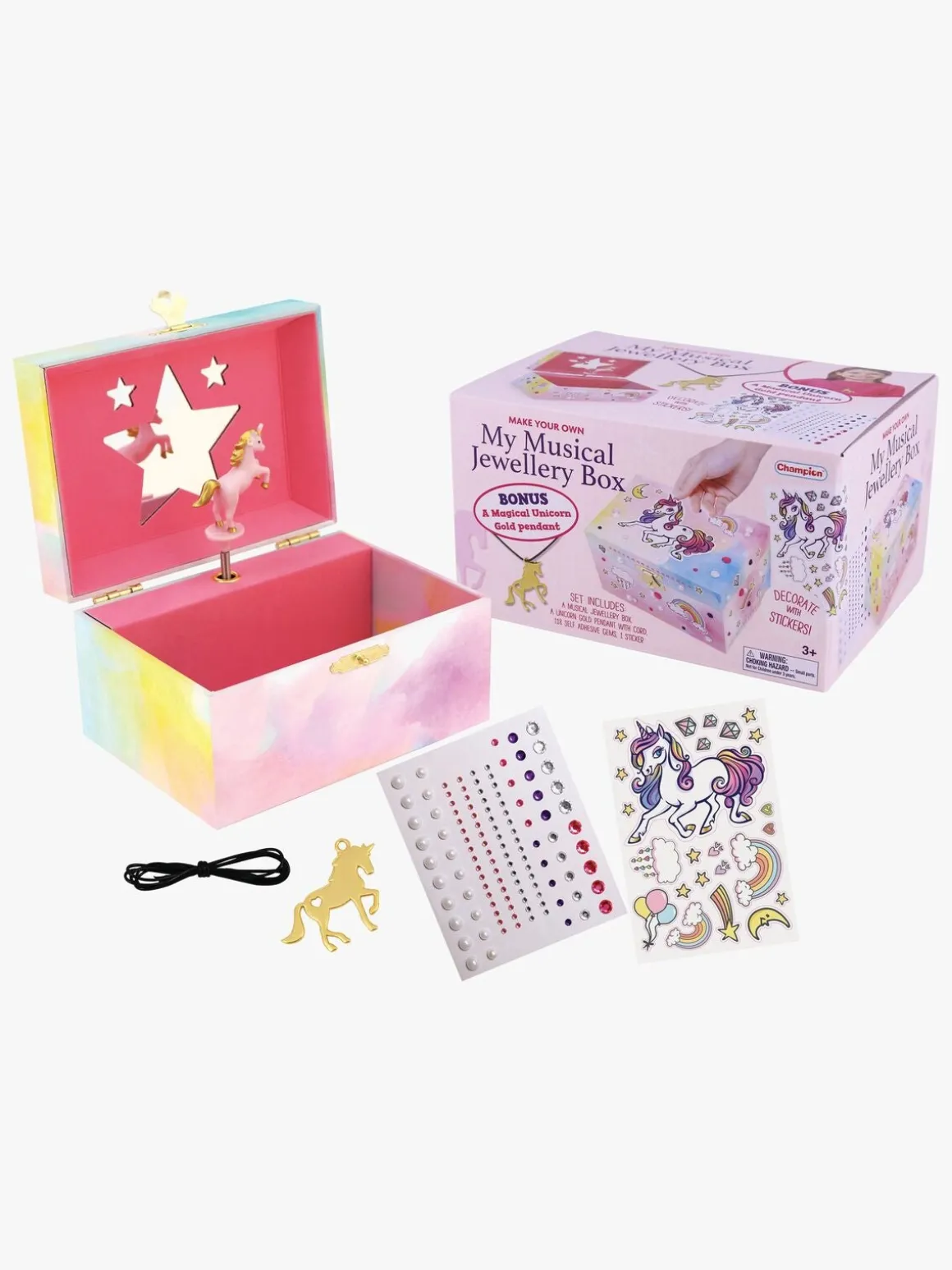 – Indeholder: 118 selvklæbende ædelstene, 1 klistermærkeark og en enhjørningehalskæde.
