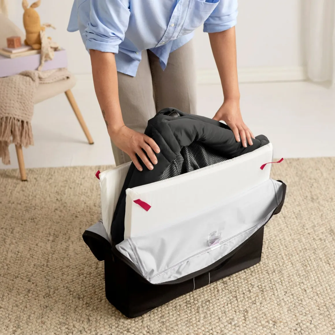 Madrasovertræk, sengetøj og yderstof er aftagelige og kan maskinvaskes.