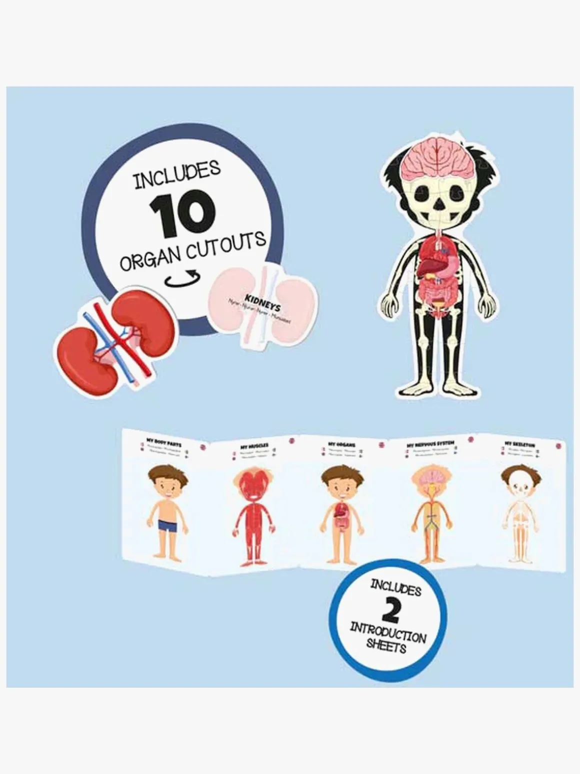– Indeholder også 10 organer til at placere på puslespillet og en folder, der forklarer om de forskellige organer.