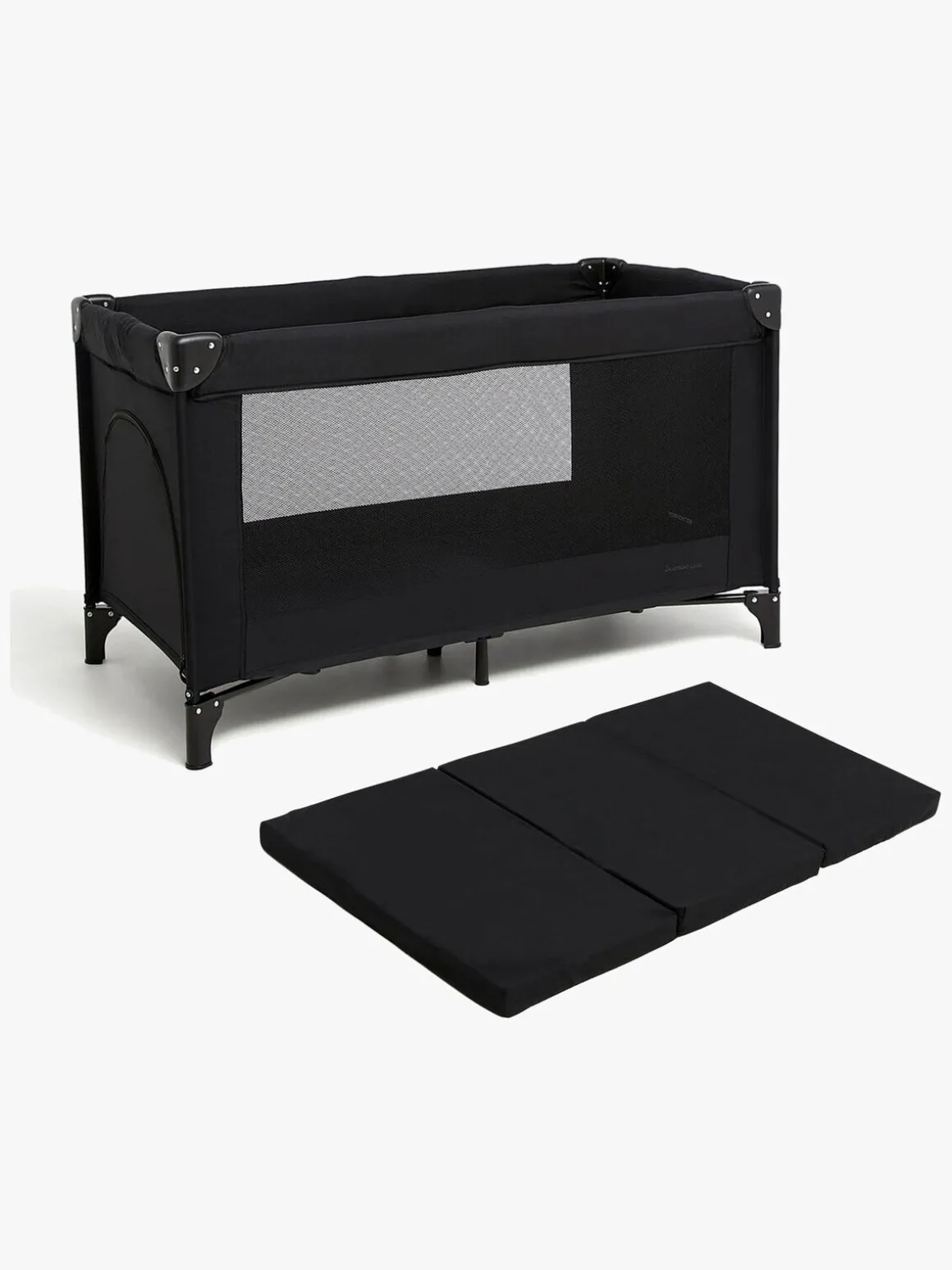 – Quickfold sammenfoldningssystem – blot træk i stroppen i bunden for at folde sengen sammen og tryk bunden ned for at folde den ud.