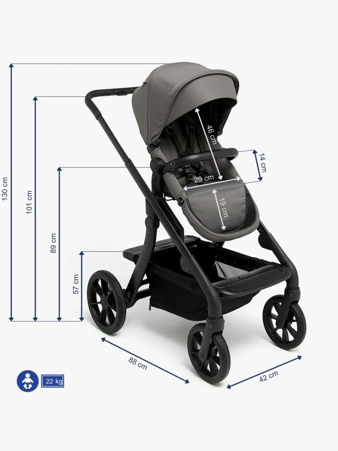 – Maksimal vægtbelastning i babysæde: 30 kg/pr. sæde (sælges separat).