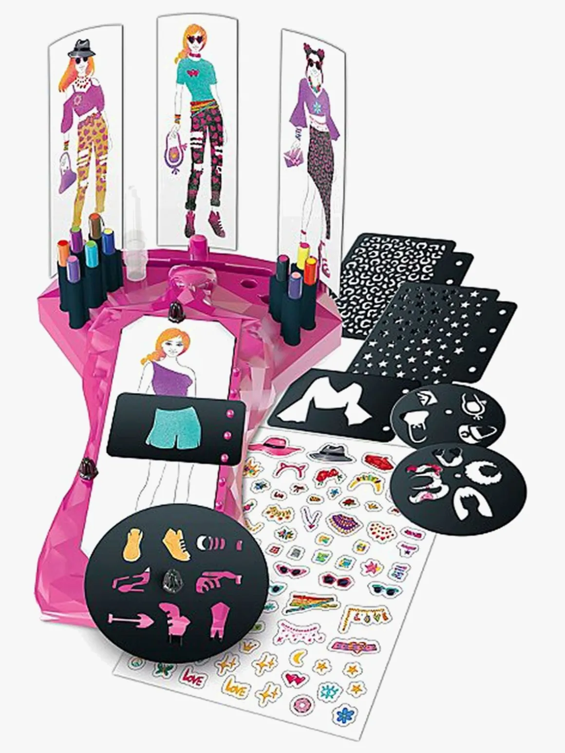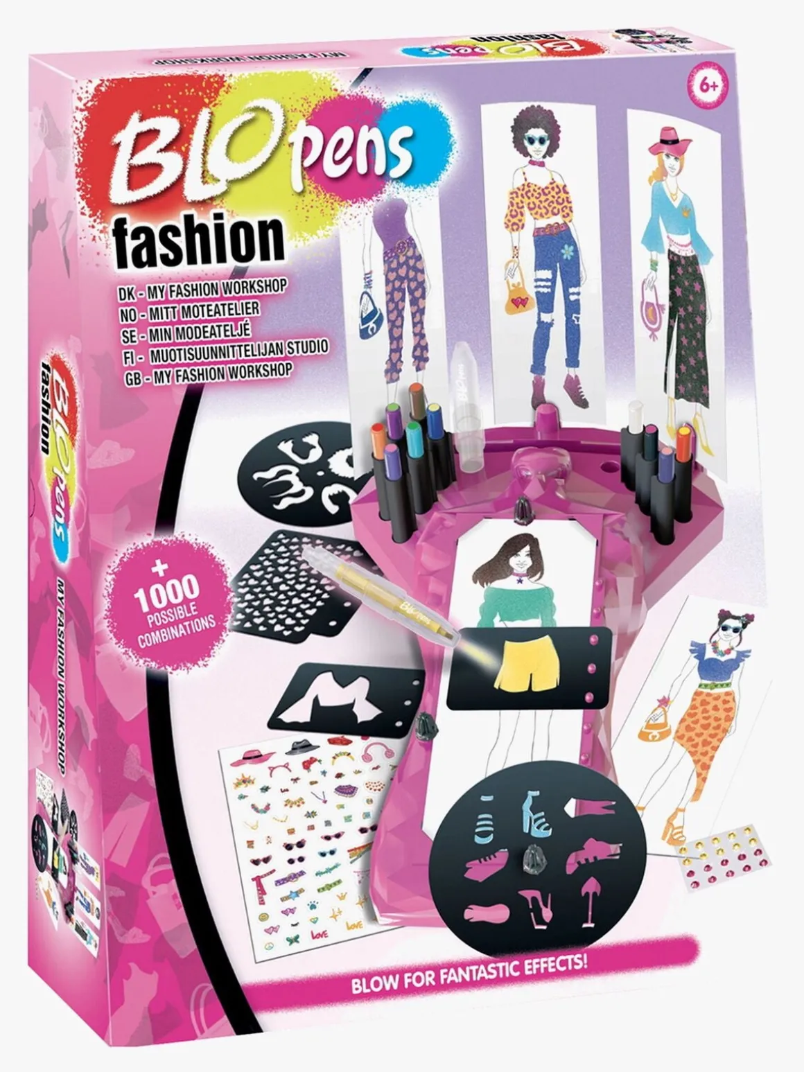 Indeholder: 1 stylingbase, 20 genbrugsbare skabeloner, 20 modelark, 1 klistermærke, 10 Magic Mini Blo Pens + 1 aktivator, 1 geletus og 1 brugsanvisning.