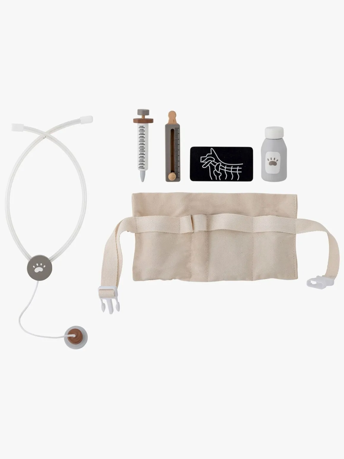 – Indeholder: 1 taske, 1 stetoskop, 1 kanyle, 1 termometer, 1 røntgenbillede, 1 medicinflaske.