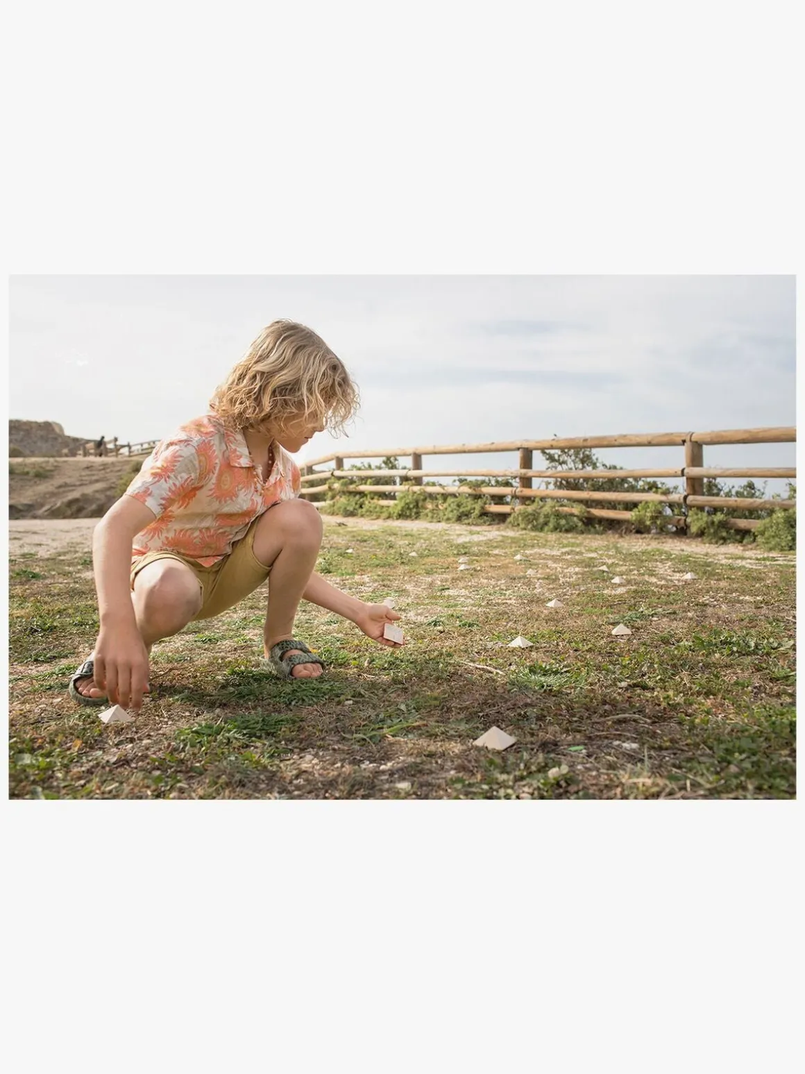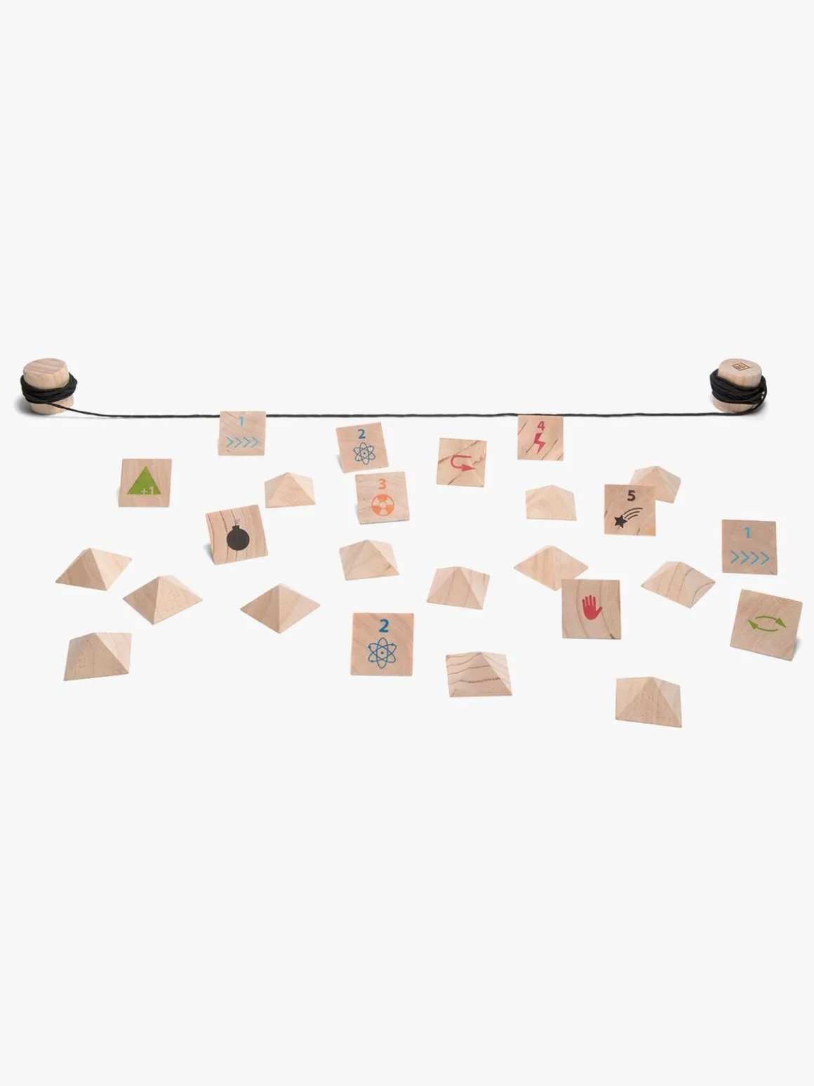 – Træ, stof, elastisk bånd.