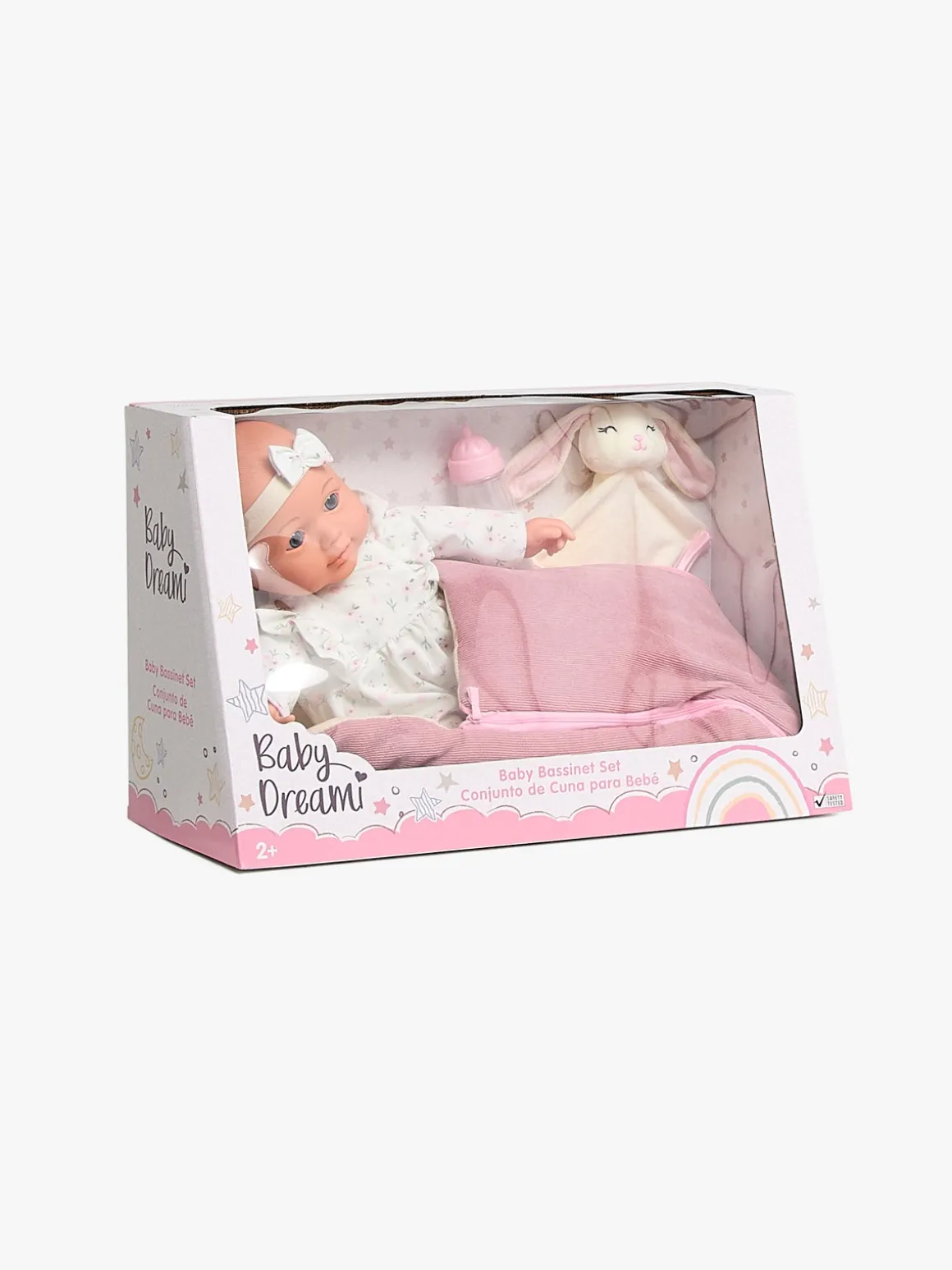 – Indeholder: 1 dukke, 1 bærekurv, 1 sutteflaske, 1 nusseklud.