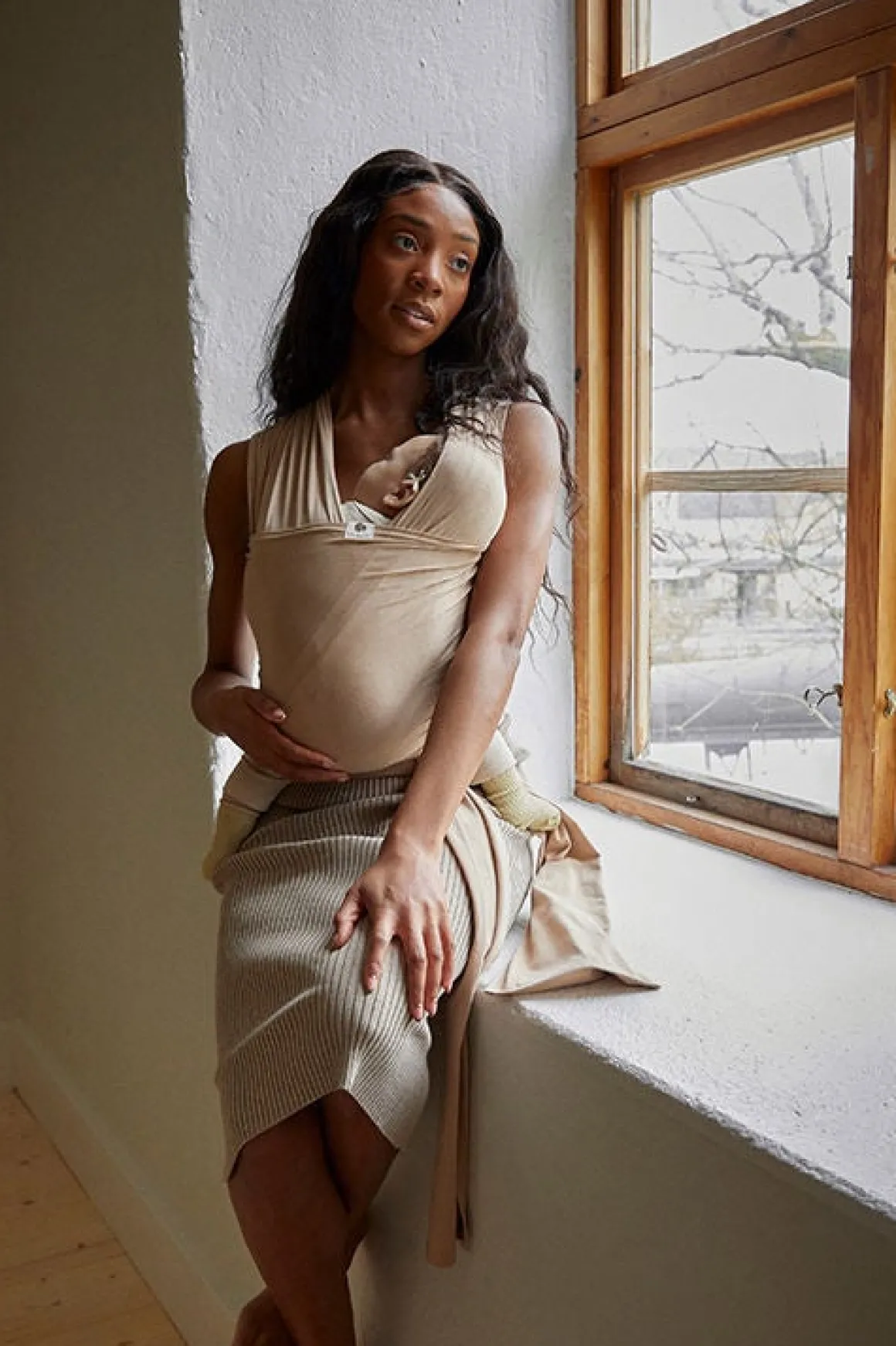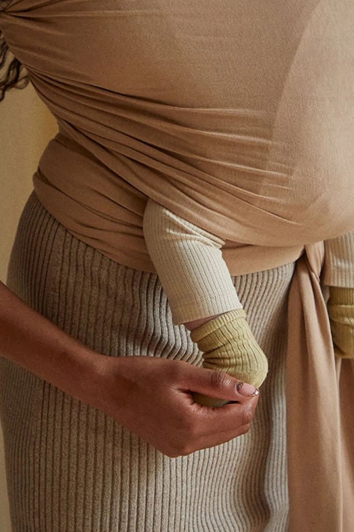 Coracors strækvikler har tovejsstretch, der gør den føjelig og aflastende. Viklen er fremstillet af blødt, økologisk GOTS-certificeret bomuld, men en smule elastan, for at gøre den mere føjelig. Dette materiale er åndbart og holder både dig og dit barn tilpas varm.
