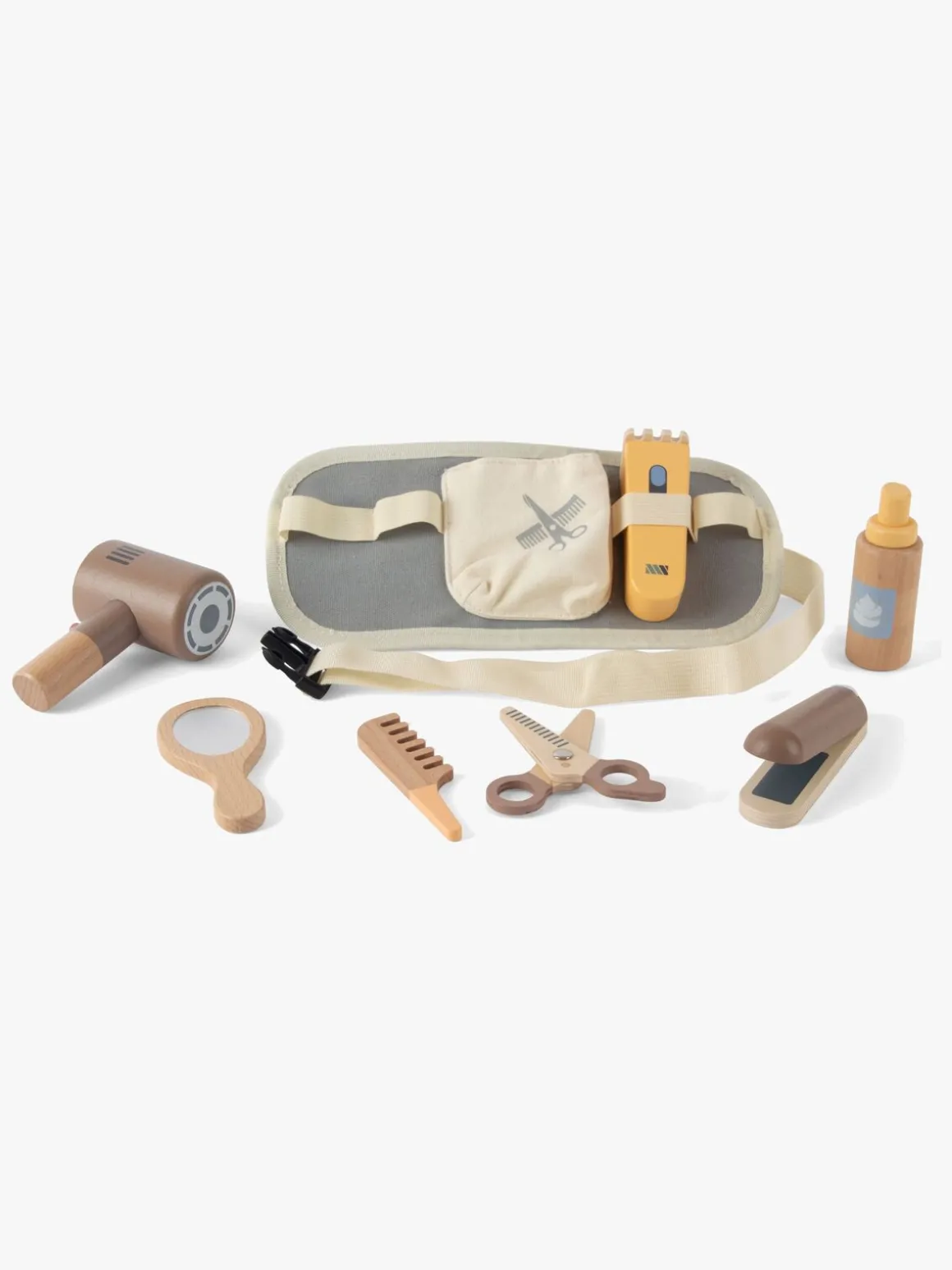 – Indeholder: 1 frisørtaske, 1 hårtørrer, 1 frisørsaks, 1 fladjern, 1 barbermaskine, 1 kam, 1 sprayflaske, 1 spejl.
