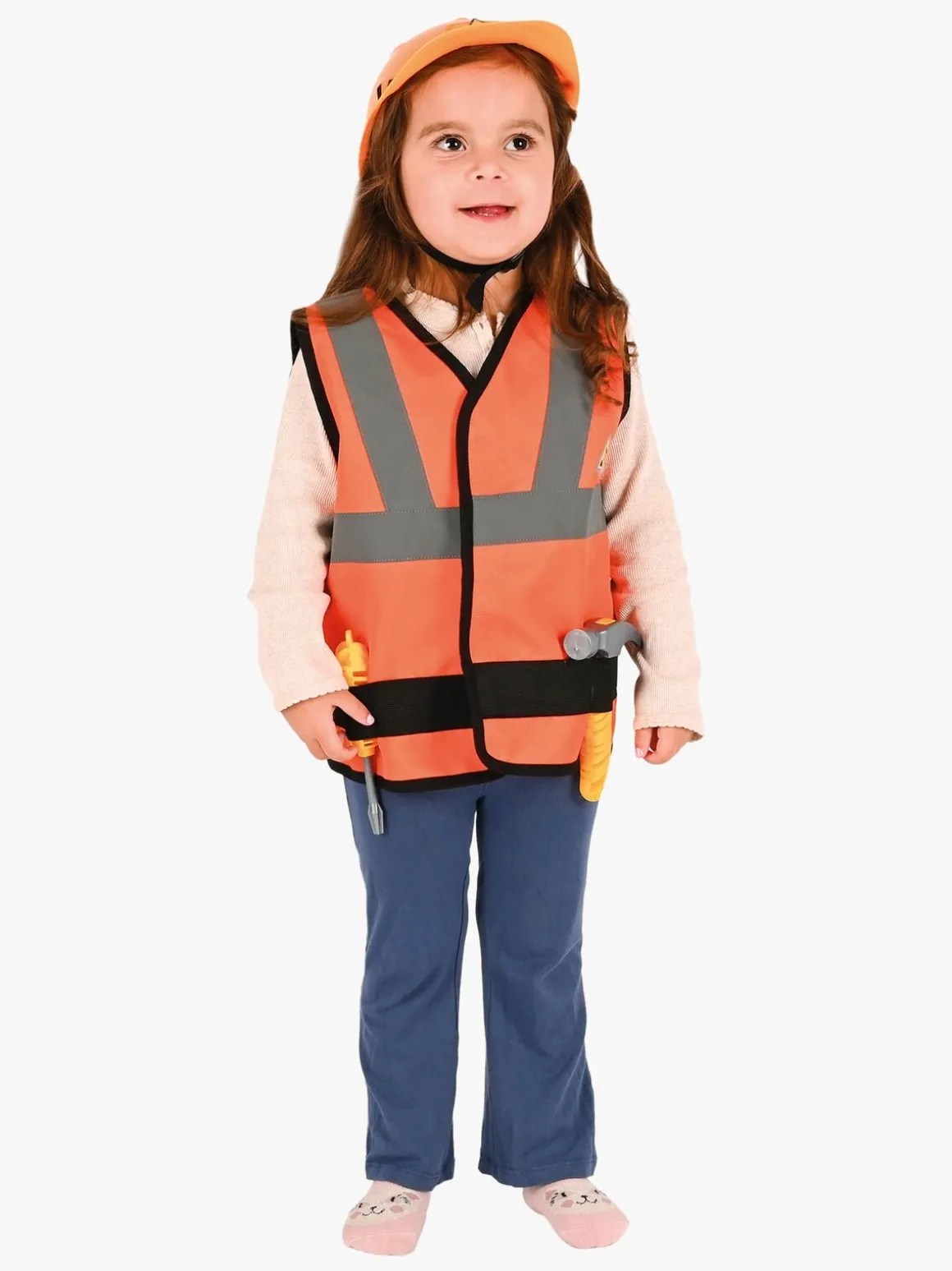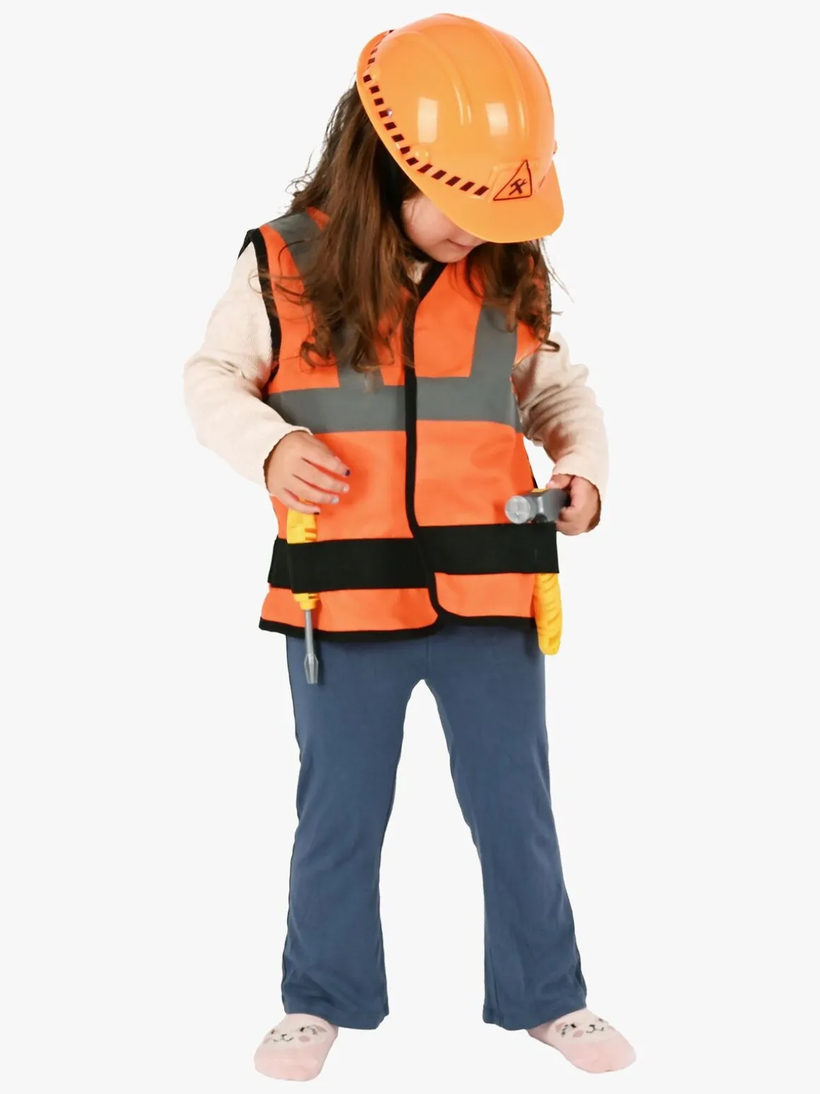 – Indeholder: 1 bygningsarbejdervest, 1 hjelm, 1 legetøjshammer, 1 legetøjsskruetrækker.