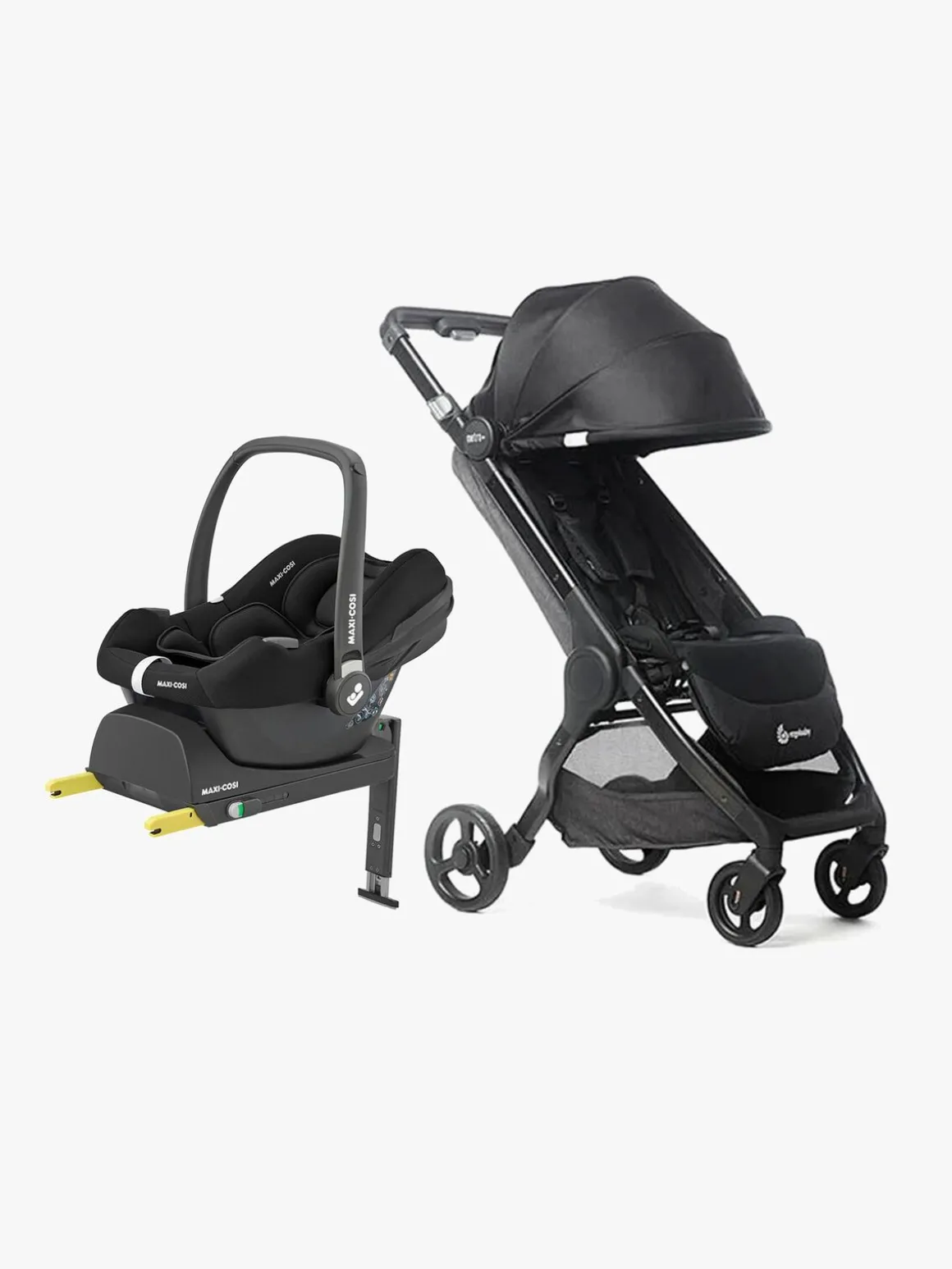 I denne pakke får du også en CabrioFix i-Size babyautostol fra Maxi-Cosi med en medfølgende base. Den har en justerbar hovedstøtte og en praktisk solbeskyttelse. Babyautostolen har et aftageligt spædbarnsindlæg som kan bruges til babyer under 4 måneder. CabrioFix er desuden udstyret med et integreret sidebeskyttelsessystem, der giver den bedste beskyttelse i tilfælde af sidekollision. Babyautostolen har et letvægtsdesign og fungerer sammen med de fleste travelsystemer på markedet.