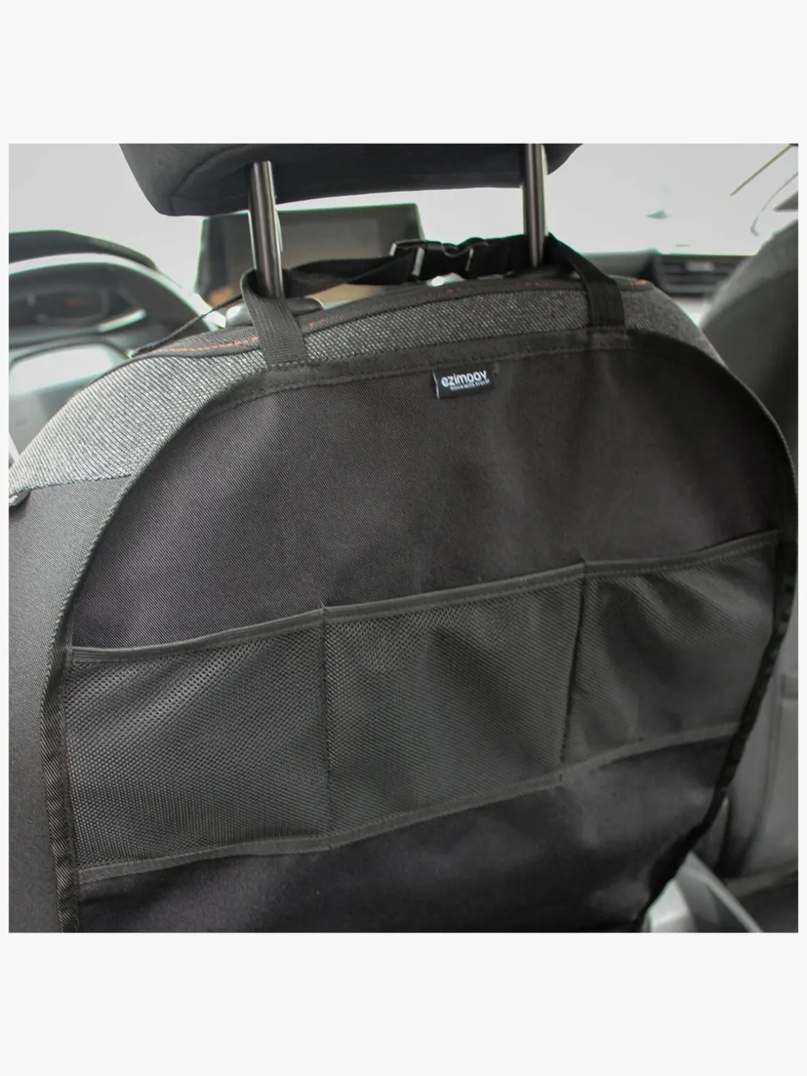 – Fastgøres til forsædets nakkestøtte og ryglæn med stropperne.