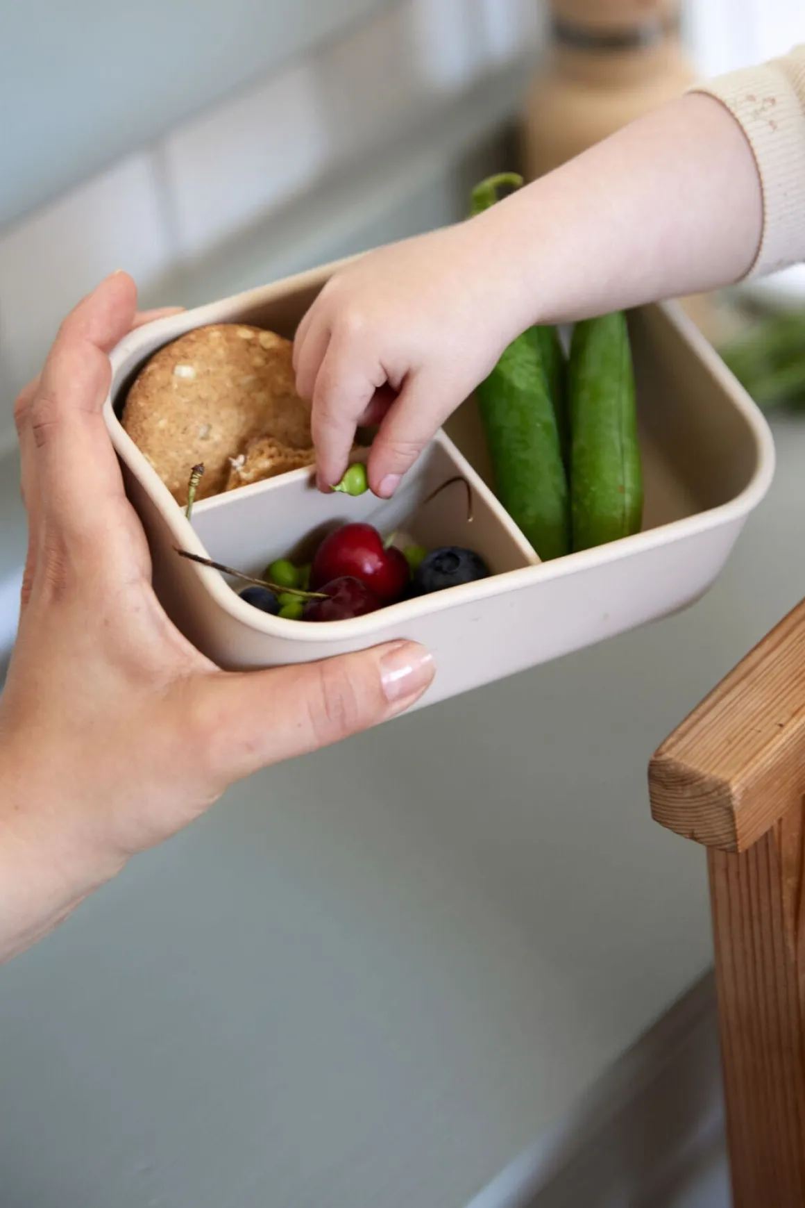 – Madkassen tåler mikrobølgeovn, ovn og fryser.