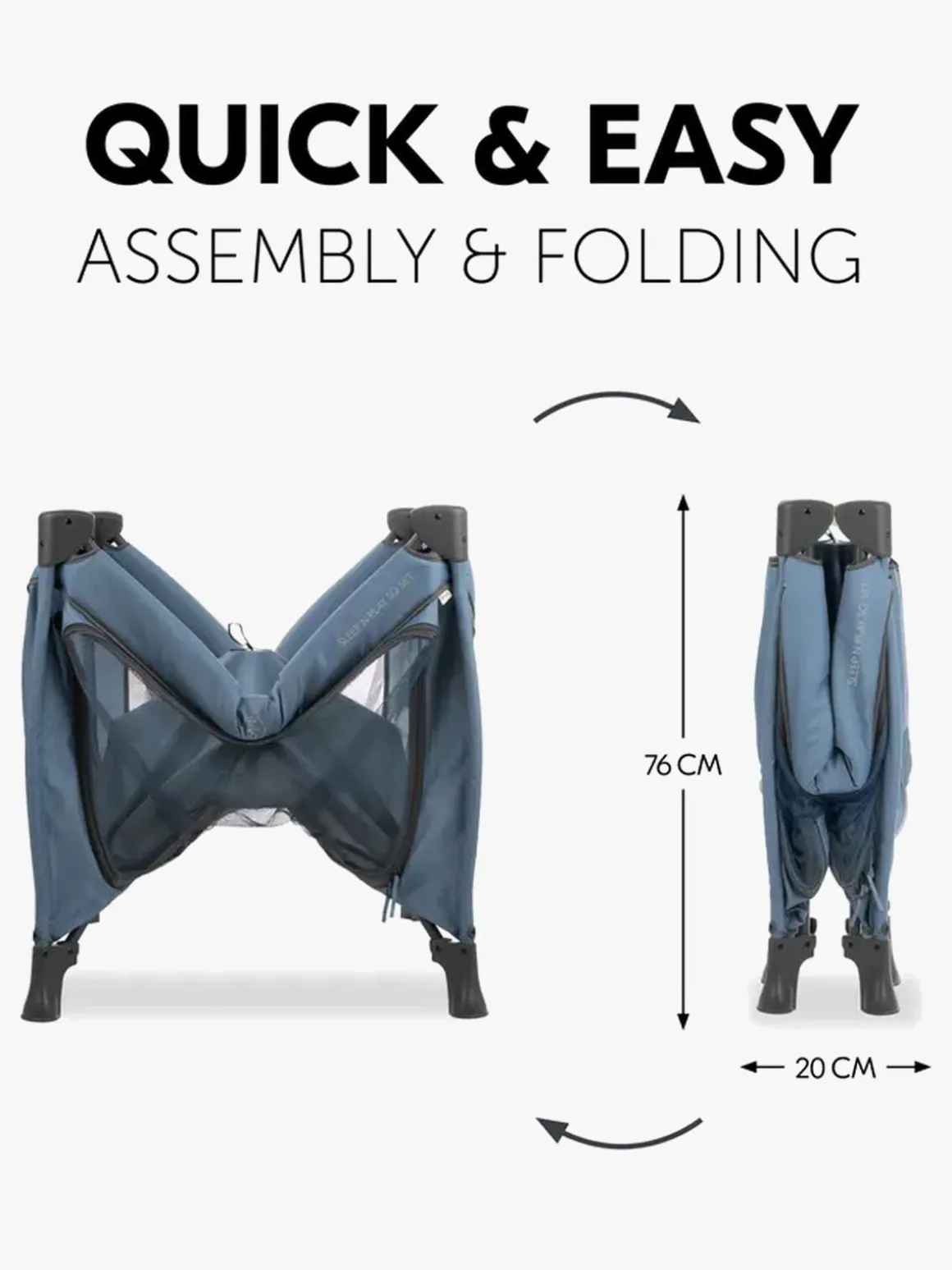 – Mål sammenfoldet: H 20 x L 76 x W 20 cm.