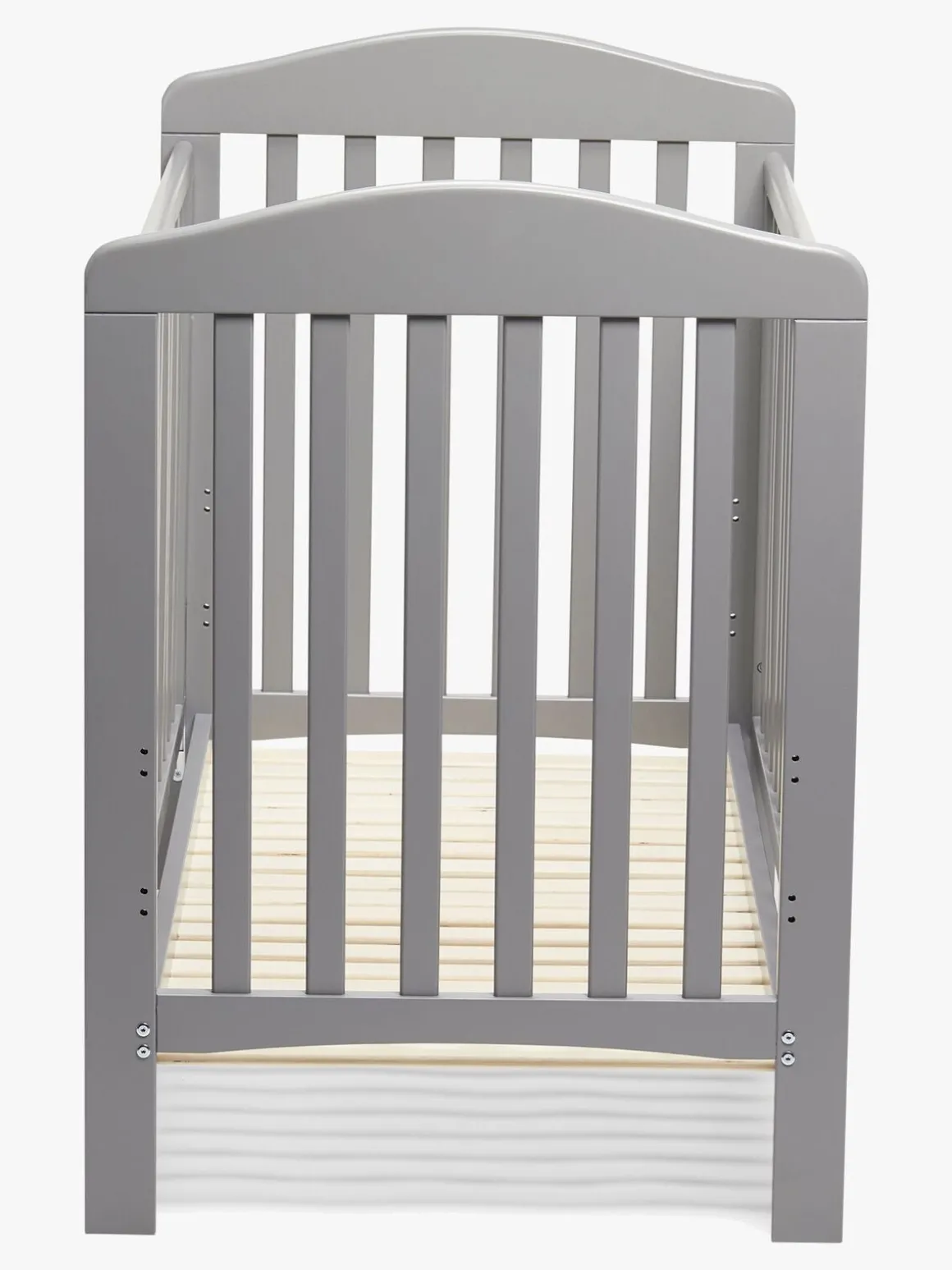 Justeringen af den lange side er børnesikret og kræver, at du løsner den nederste kant, før du løfter den. Du skal blot skubbe den lidt ind med foden og løfte lige op. Rib-bunden har desuden to faste positioner, hvor dropside-funktionen ikke kan bruges.