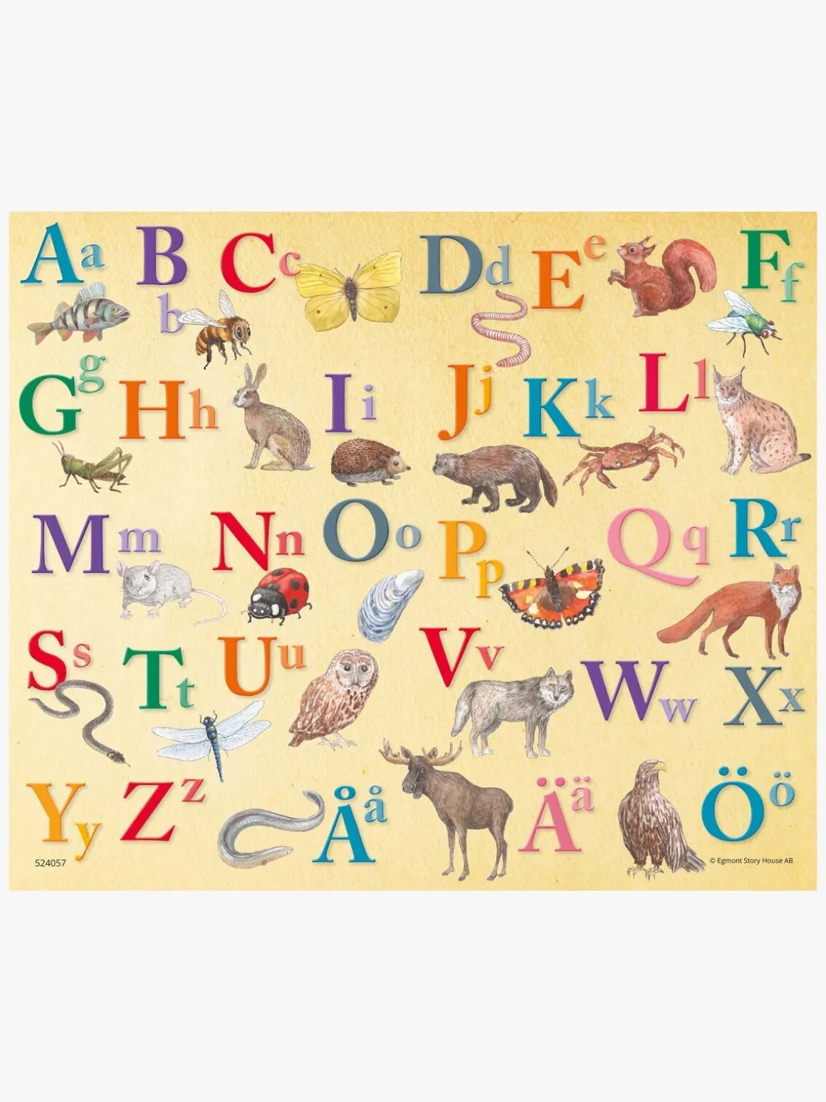 – Bogstaver fra A-Ö (svensk alfalbet).