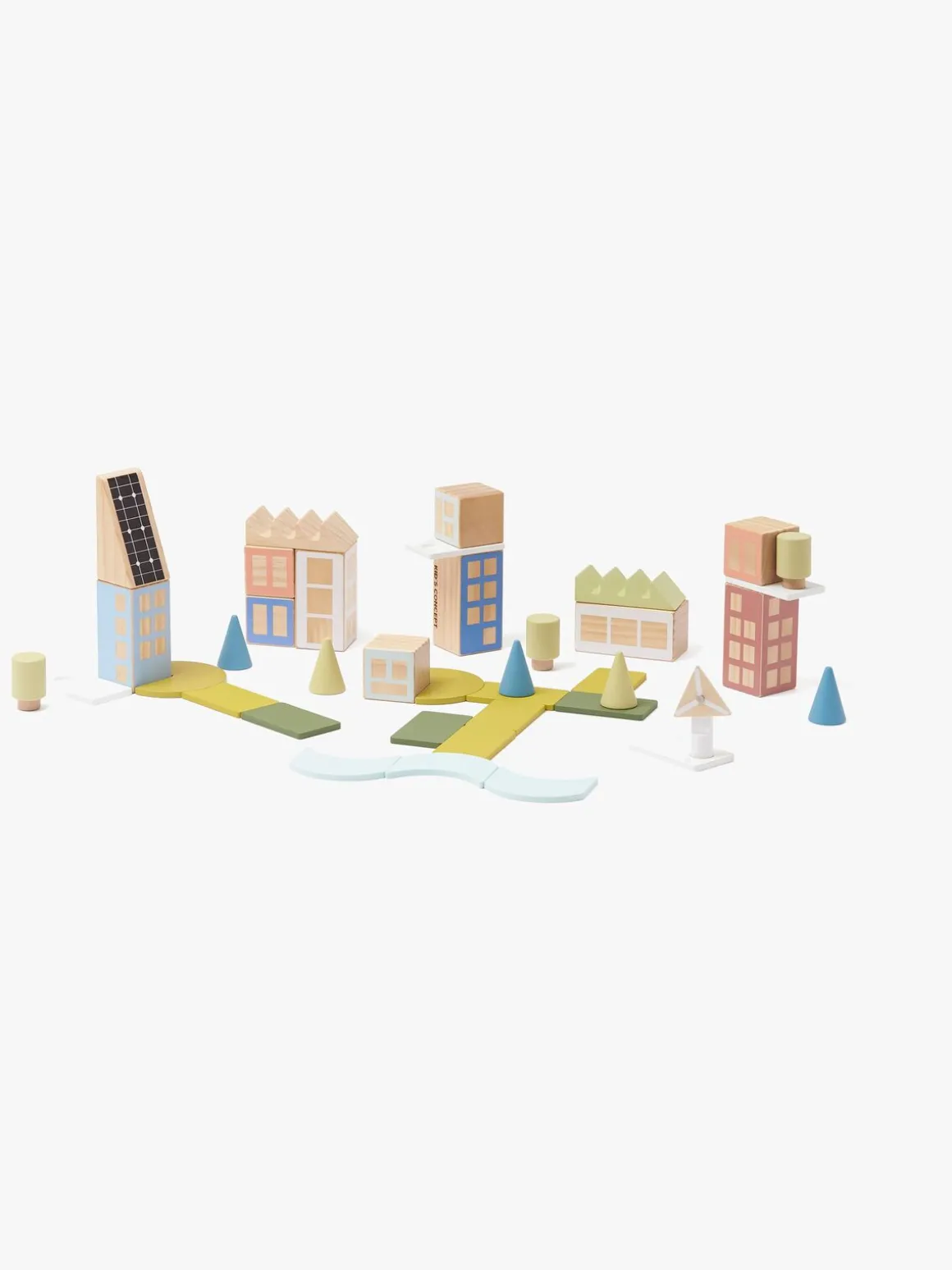 – Indeholder: 10 huse, 3 træer, 5 fyrretræer, 1 vindmølle, 1 busk, 1 fabrikstag, 2 græsstykke, 6 vejdele, 4 plader, 3 vanddele.