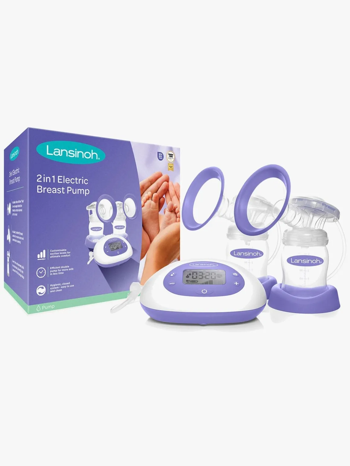 Denne brystpumpe kan indstilles efter behov. Den har 8 forskellige sugestyrker og 6 forskellige rytmer, så du får optimale muligheder for, at finde et niveau, som føles bekvemt for dig. Tiden kan du holde øje med på brystpumpens skærm.