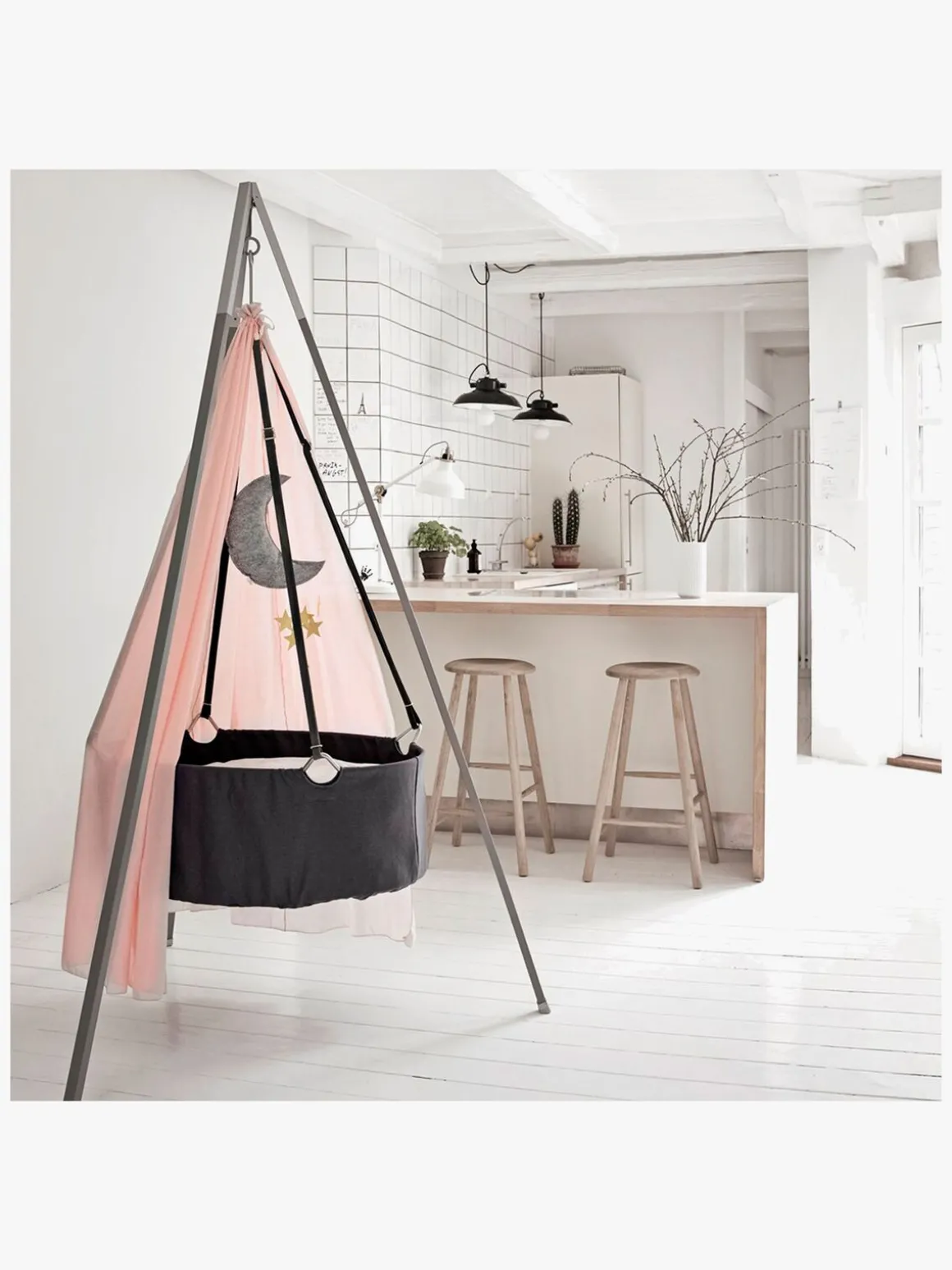 Mål: H197 cm. 120 cm mellem ben i udfoldet stilling.