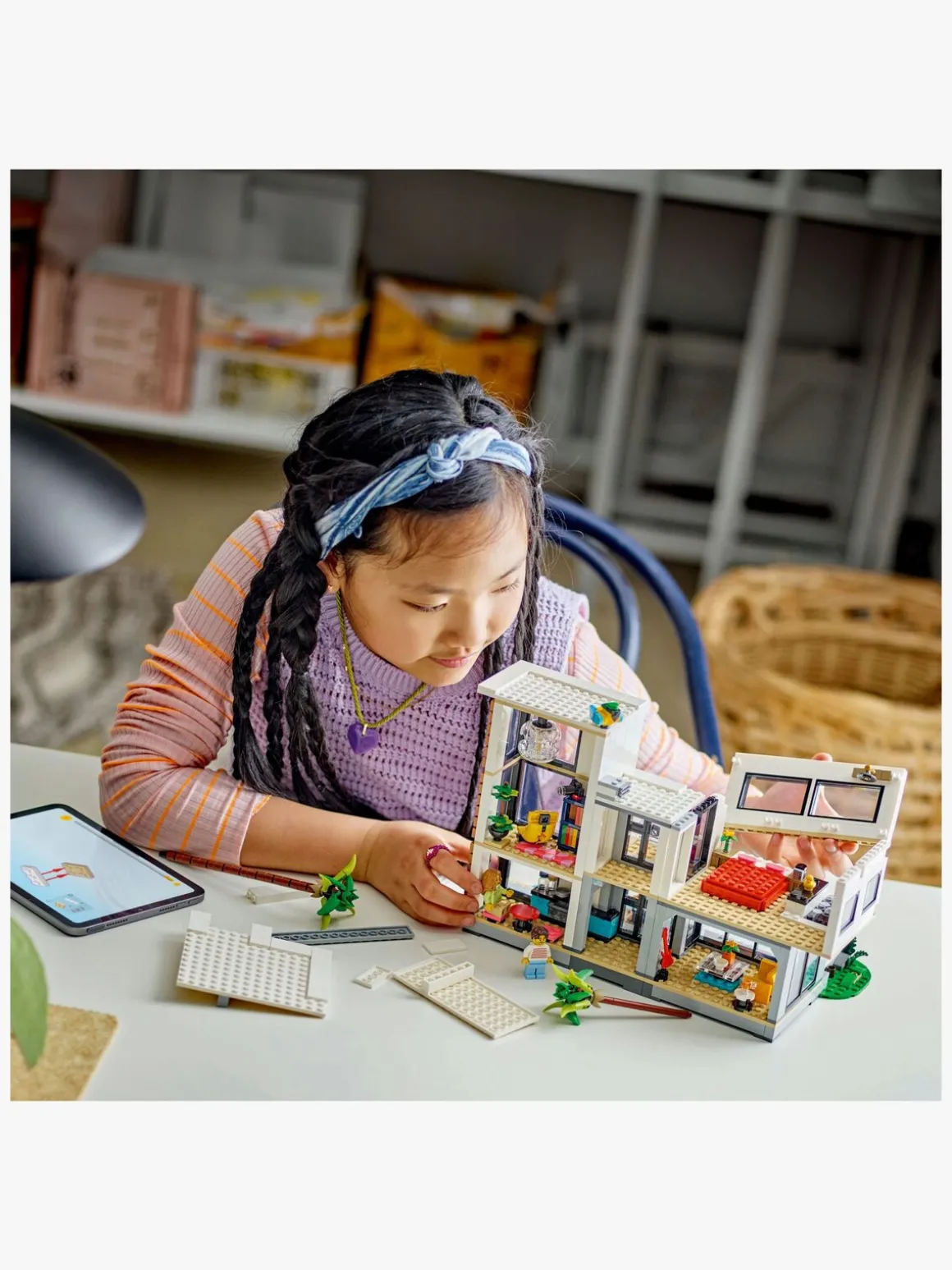 Det moderne hus og byhuset i 3 etager har adgang til rummene fra bagsiden, mens skovhytten har et tag, der kan åbnes. Huslegesættet indeholder 2 minifigurer, og LEGO fans kan bytte om på deres tøj. Hver af de 3 modeller kan også skabes ved hjælp af LEGO Builder appen, der giver en sjov digital oplevelse.