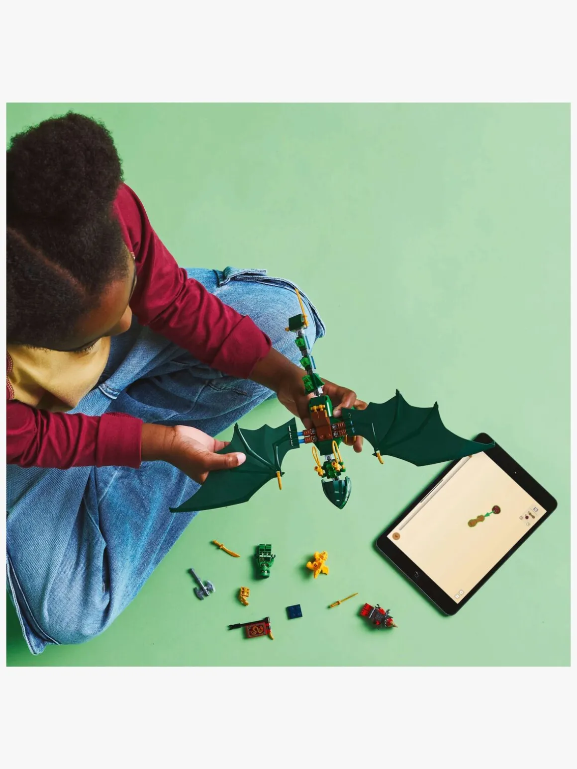— Legetøjsdrage til at genskabe flyvescener fra sæson 3 af NINJAGO: Dragerne vågner