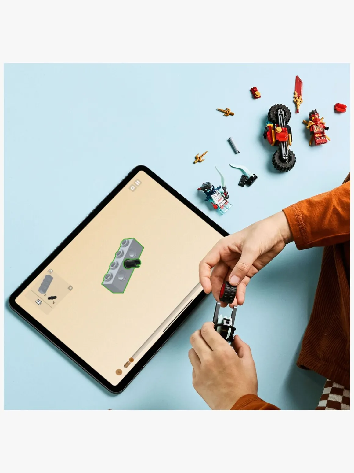 — LEGO sættet med 79 elementer omfatter Kais ninja-motorcykel, som er over 9 cm lang