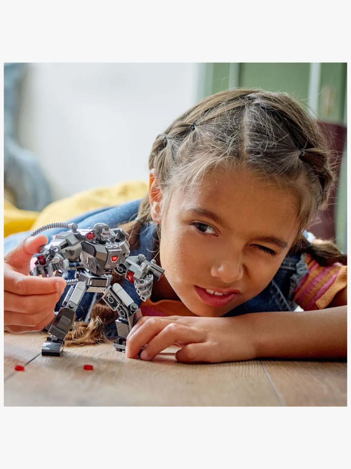 Robottens bryst kan åbnes og afslører et cockpit til War Machine-minifigurpiloten. Der er 3 knopskydere – 1 på mech’ens skulder og 2 på armene – og en opbevaringskasse på ryggen til ekstra ammunition. Den bevægelige Marvel-figur har leddelte arme, ben og hænder, så fans af War Machine og mech-krigere kan nyde endeløs fysisk kampaction. Børn kan udvide legemulighederne endnu mere ved at kombinere dette byggelegetøj med andre LEGO Marvel mech-robotter i sortimentet sælges separat. For at få ekstra digitalt sjovt kan byggere zoome ind på og dreje modeller i 3D samt holde styr på, hvor langt de er kommet, i den sjove, intuitive LEGO Builder app.