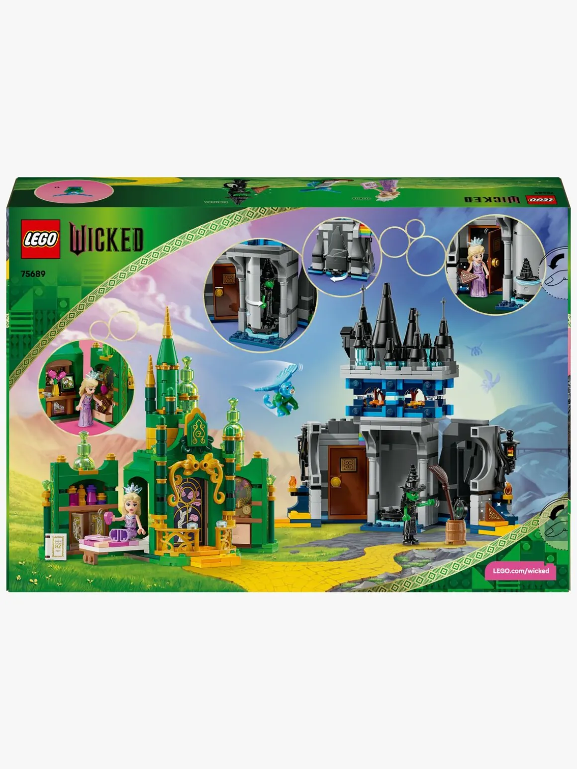 LEGO Wicked sæt rummer timevis af ubegrænset leg, når fans genskaber filmscener eller selv digter historier. Byggeriet er lige så sjovt som legen og giver 2 superseje udstillingsgenstande. Indeholder 860 elementer.