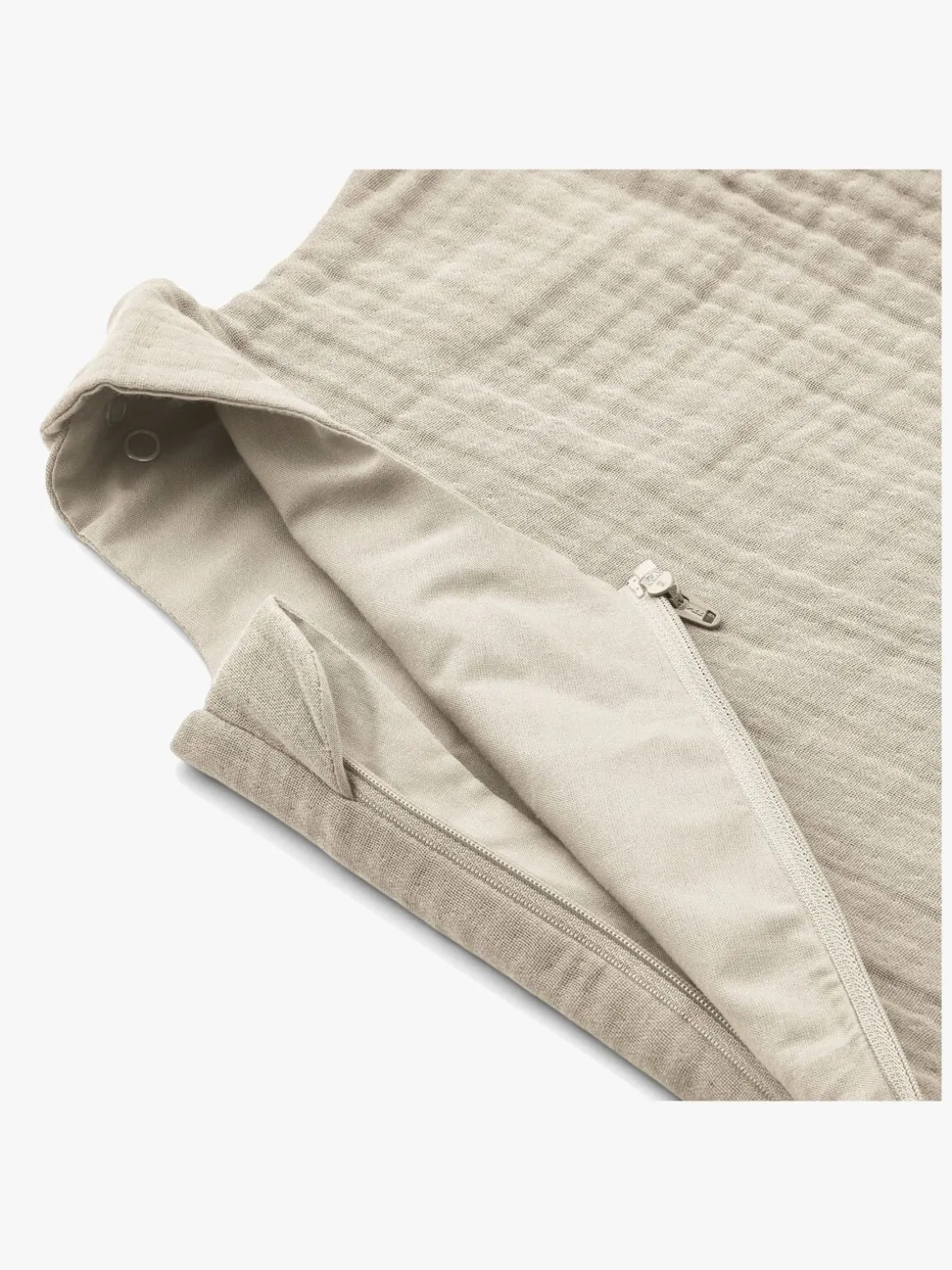 Flora sovepose fra LIEWOOD med et let, åndbart stof i økologisk bomuldsmusselin. Den har to knapper ved skuldrene til let på- og afklædning og en praktisk lynlås nederst , så det er lettere at skifte ble.