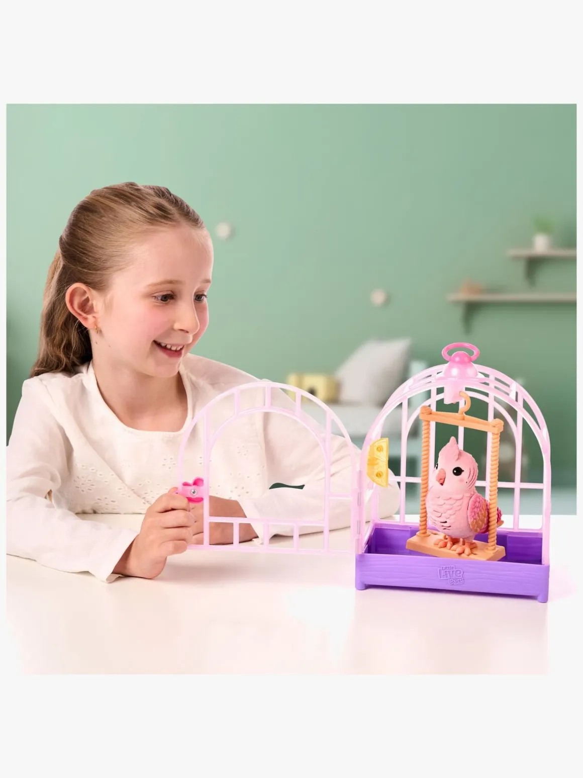 – Indeholder: 1 interaktiv fugl, 1 fuglebur med en gynge.