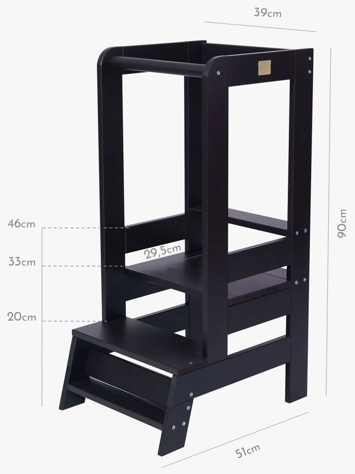 – 3 trin på 20, 33 og 46 cm.