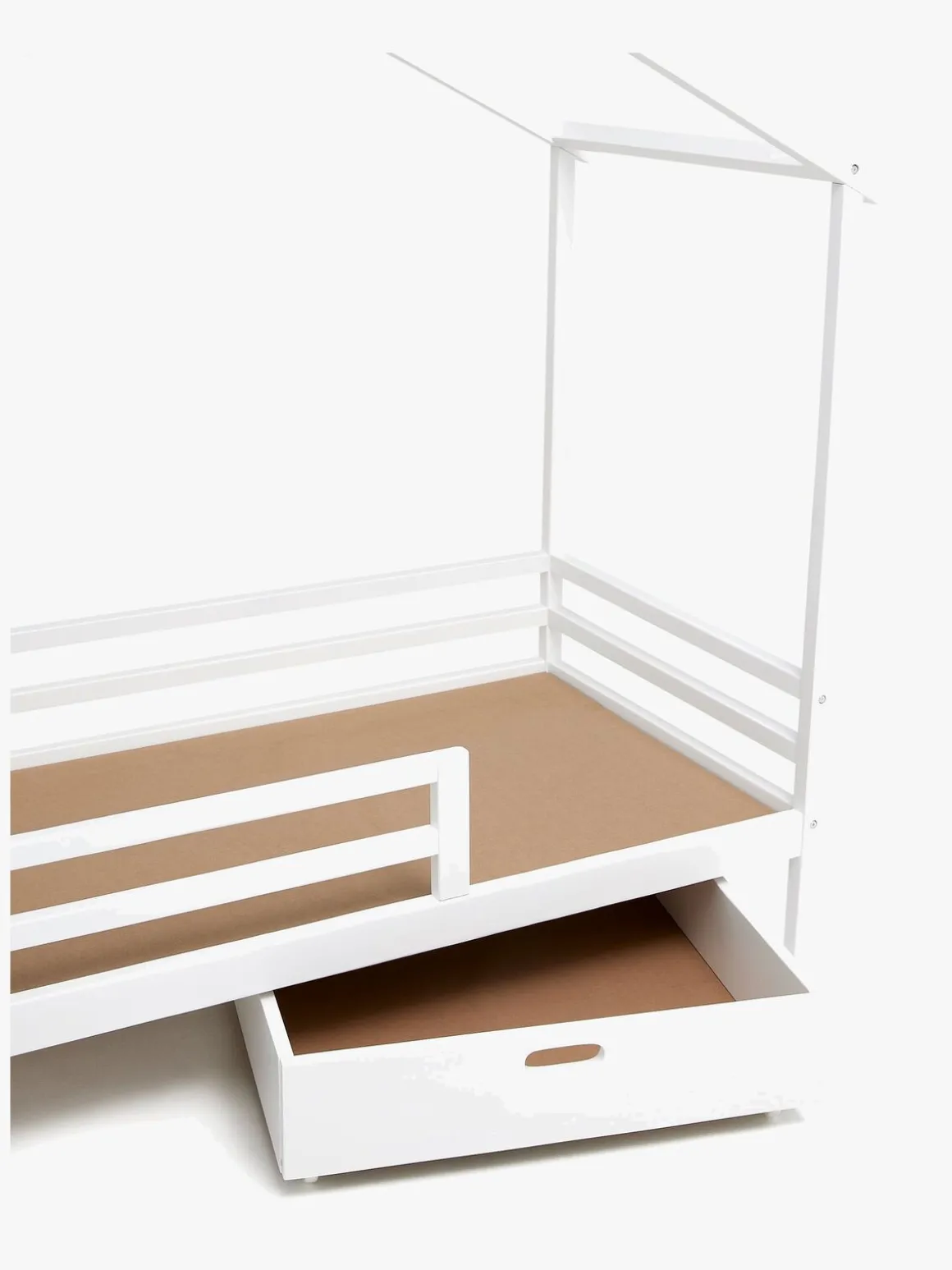 Der medfølger en smart opbevaringsskuffe. Skuffen skubbes ganske enkelt under sengen og kan bruges til opbevaring af legetøj, tøj og andre ting.
