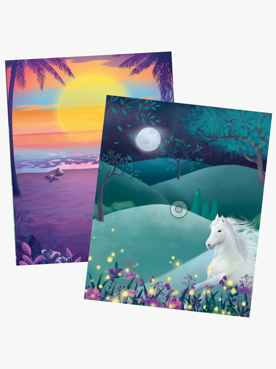– 12 farvelægningsbilleder.