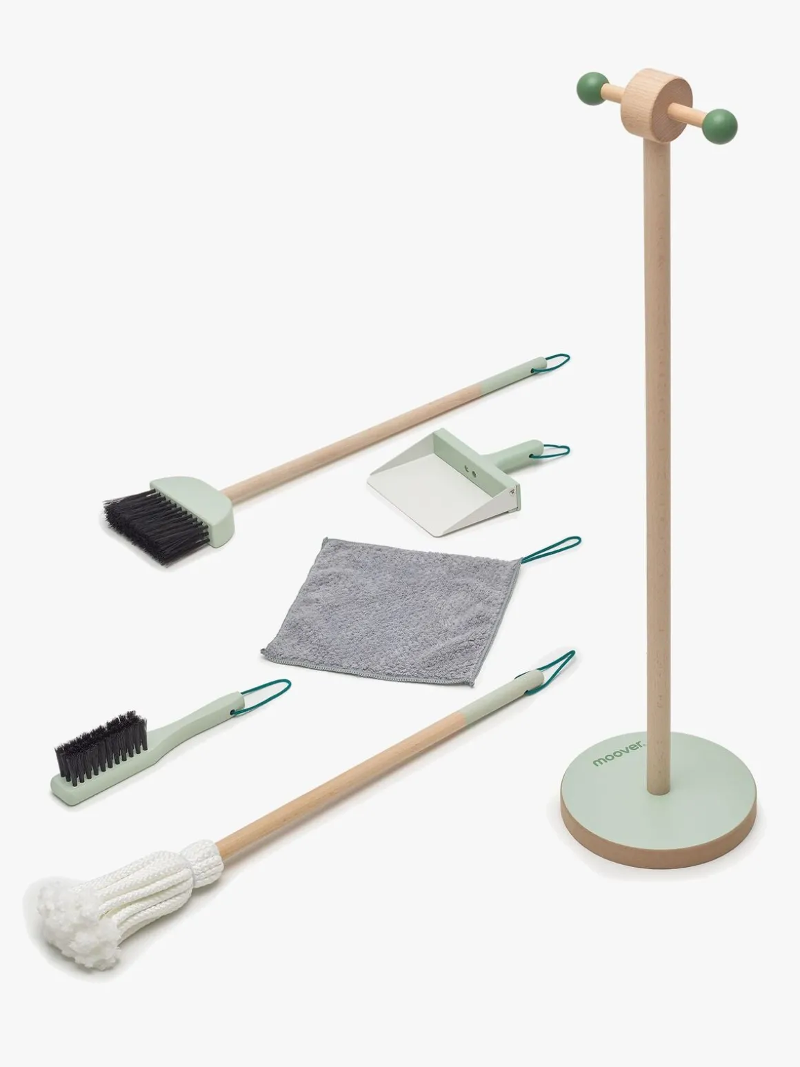 – Indeholder: 1 børste, 1 fejekost, 1 aftørringsklud, 1 fejebakke, 1 moppe, 1 stander.