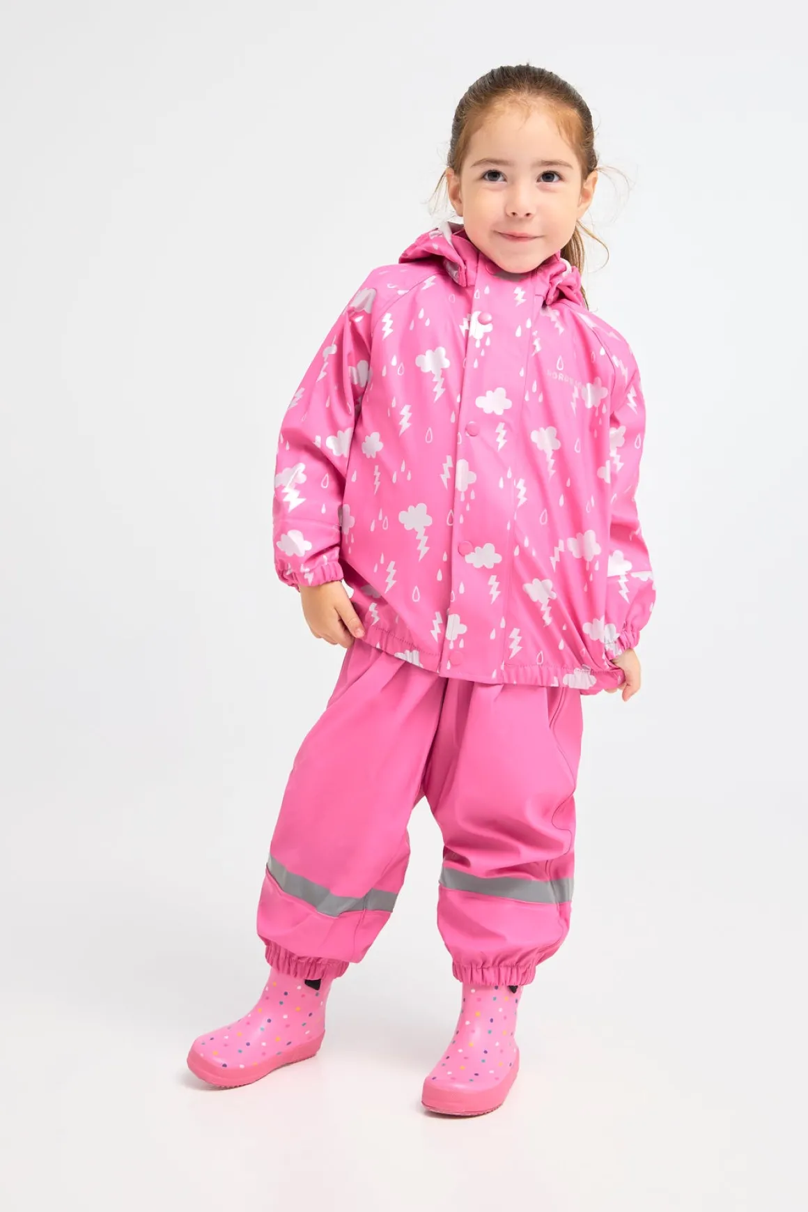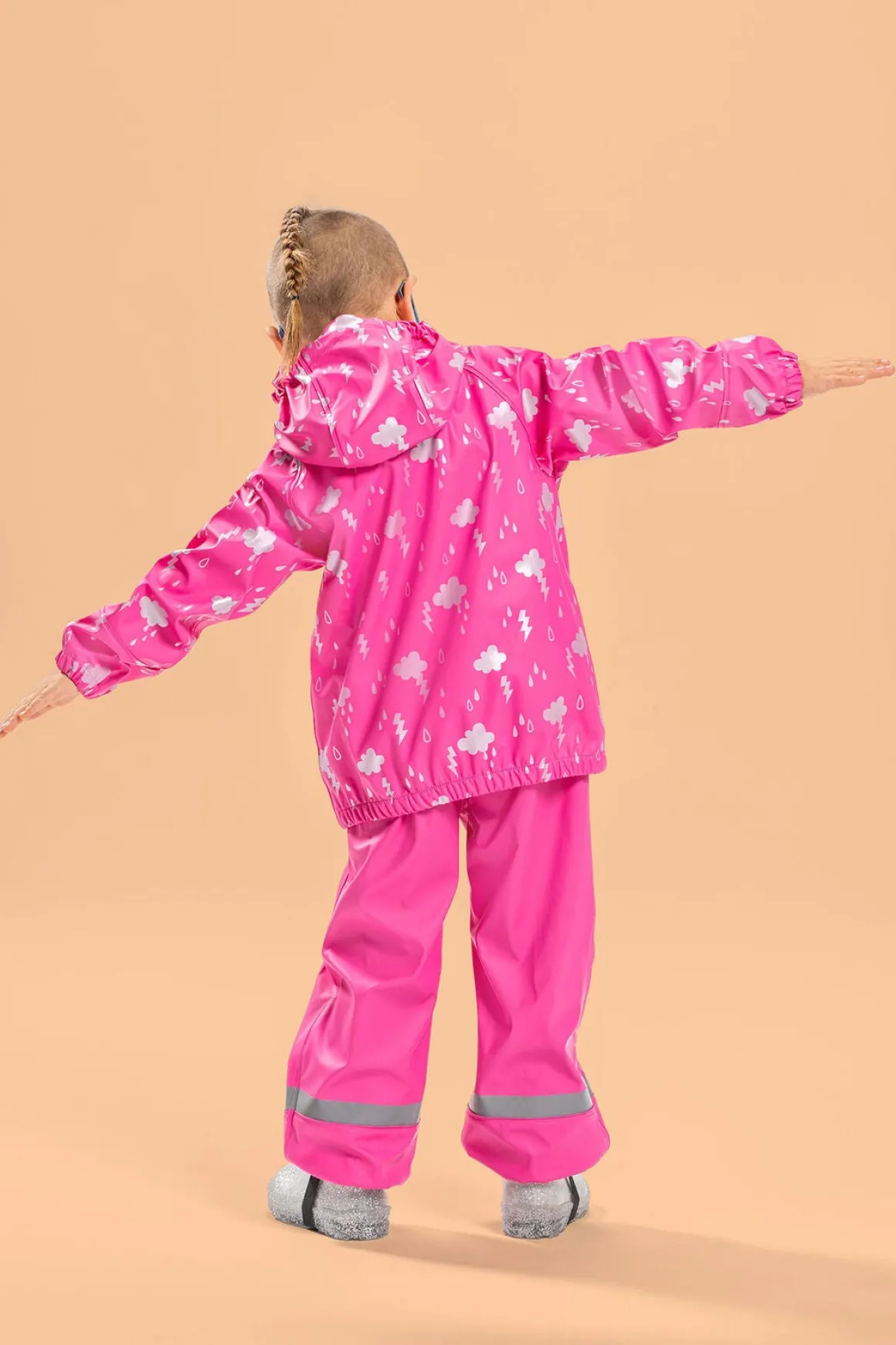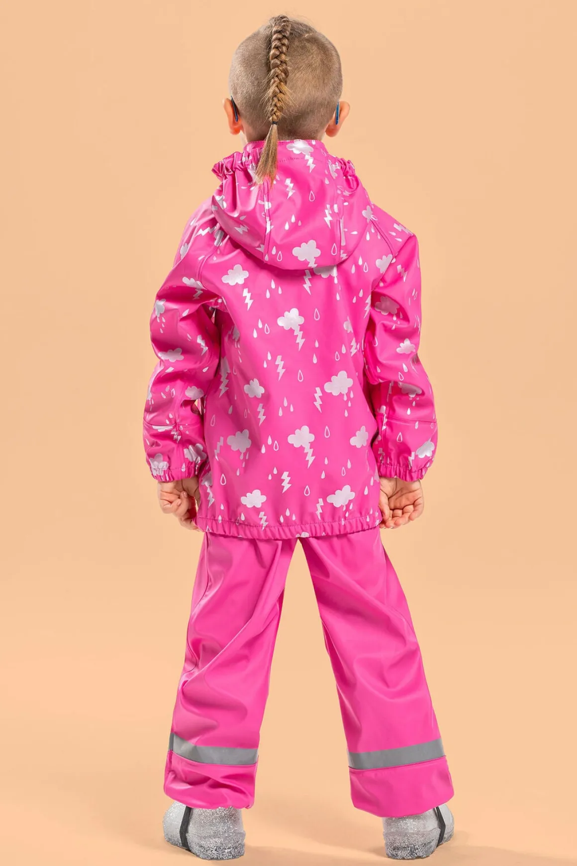 | Egenskaber | Fodstropper Refleksdetaljer Aftagelig hætte Vandtæt Svejsede sømme Vindtæt |