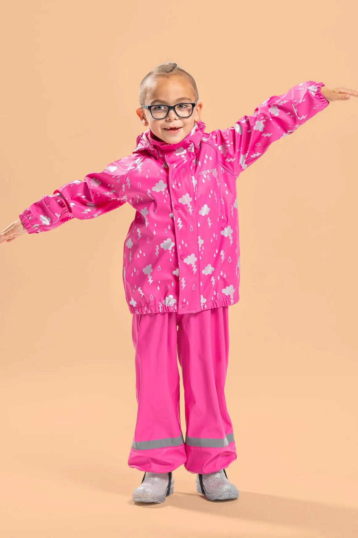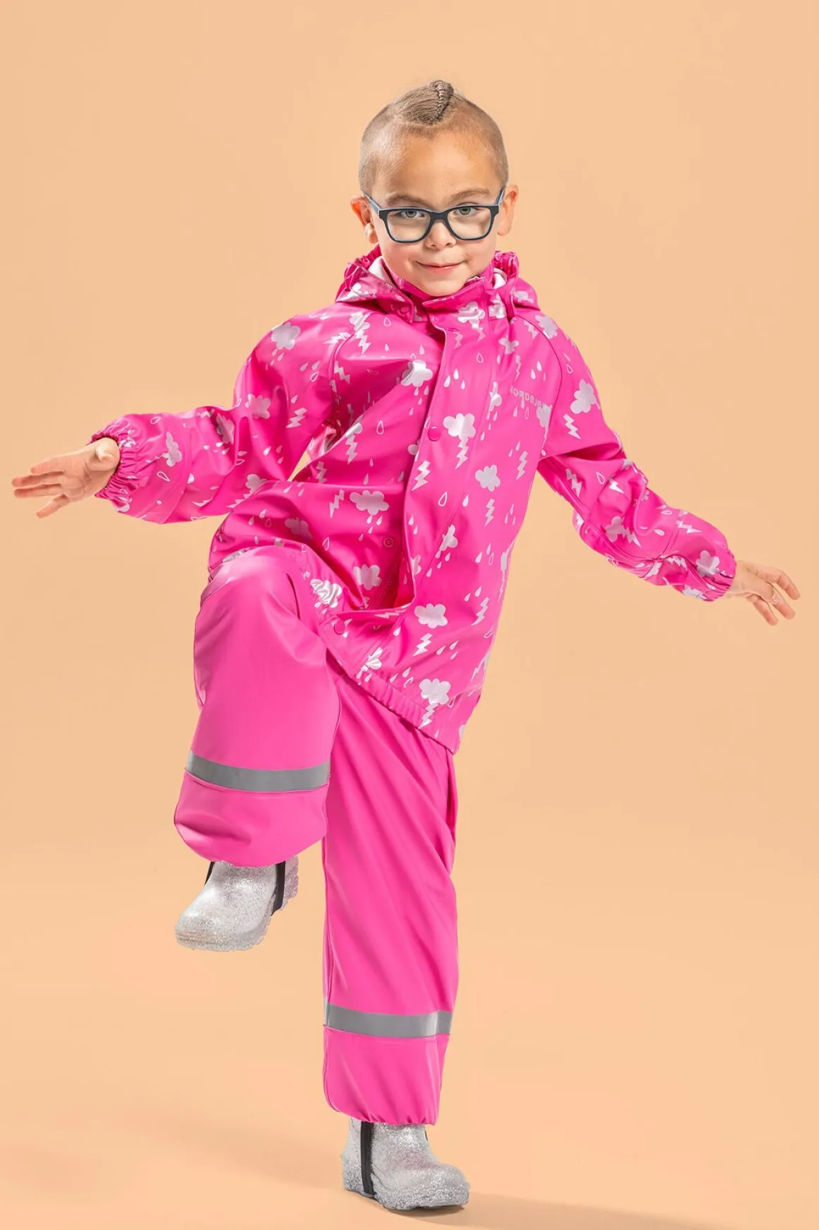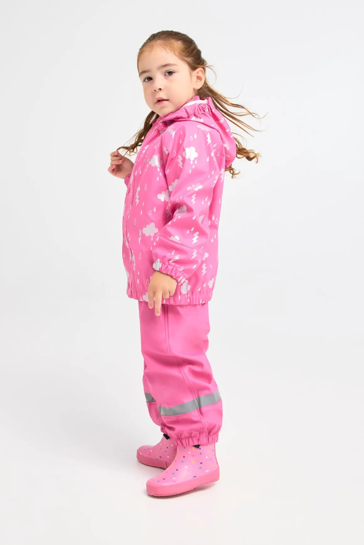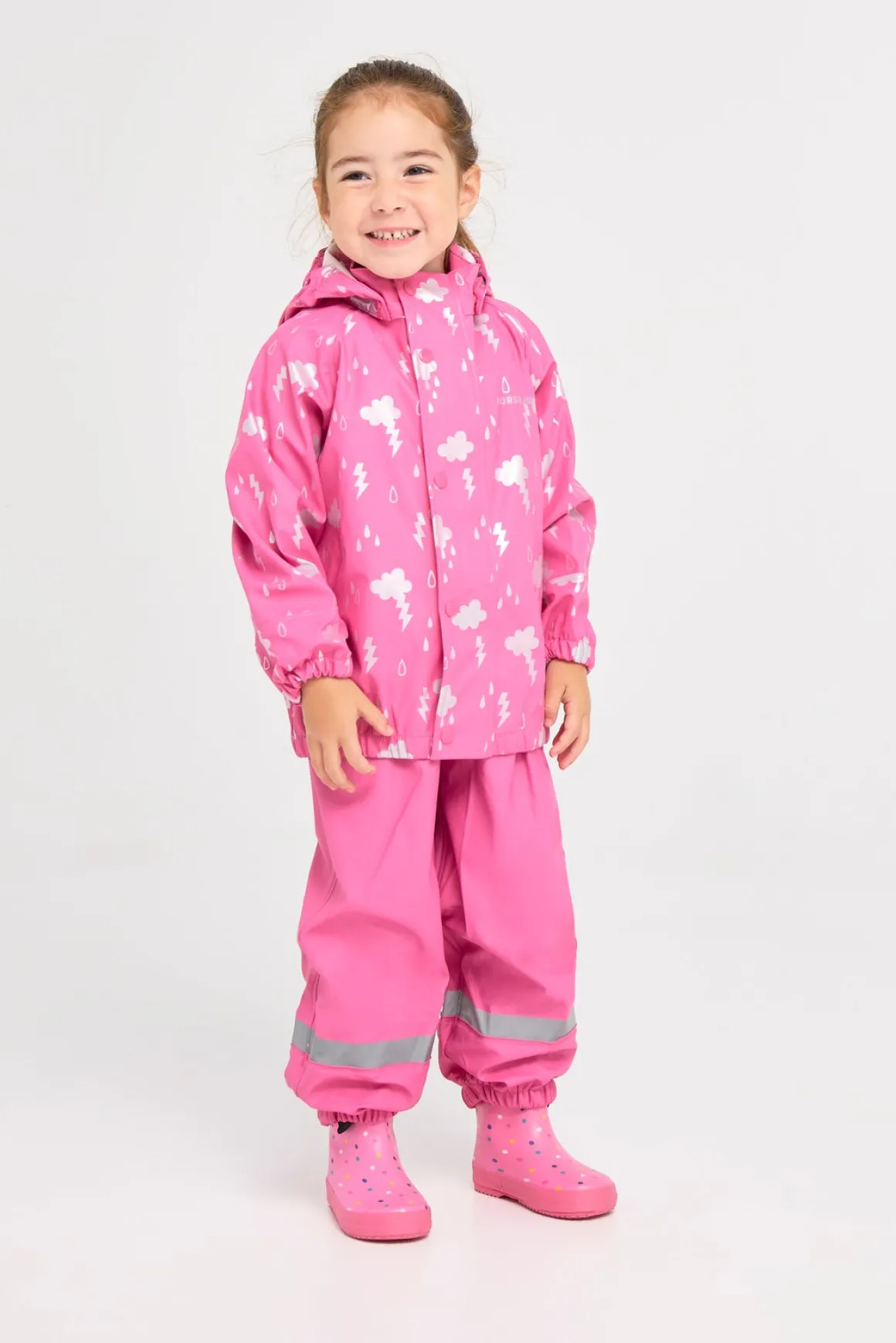 | Egenskaber | Fodstropper Refleksdetaljer Aftagelig hætte Vandtæt Svejsede sømme Vindtæt |