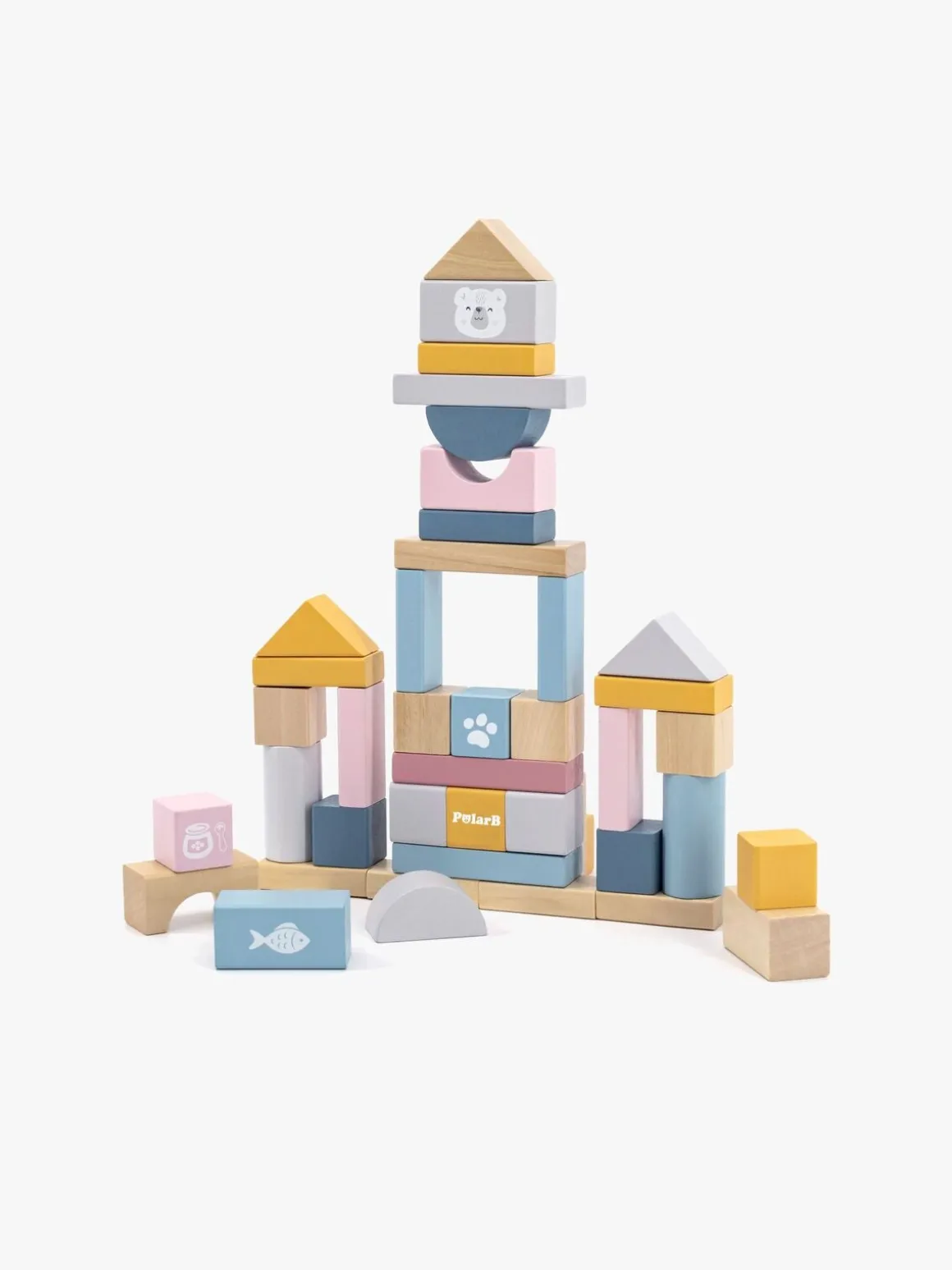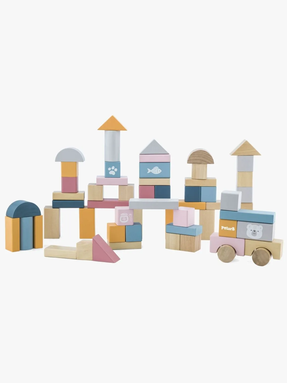 – Byggeklodser i forskellige former og farver.