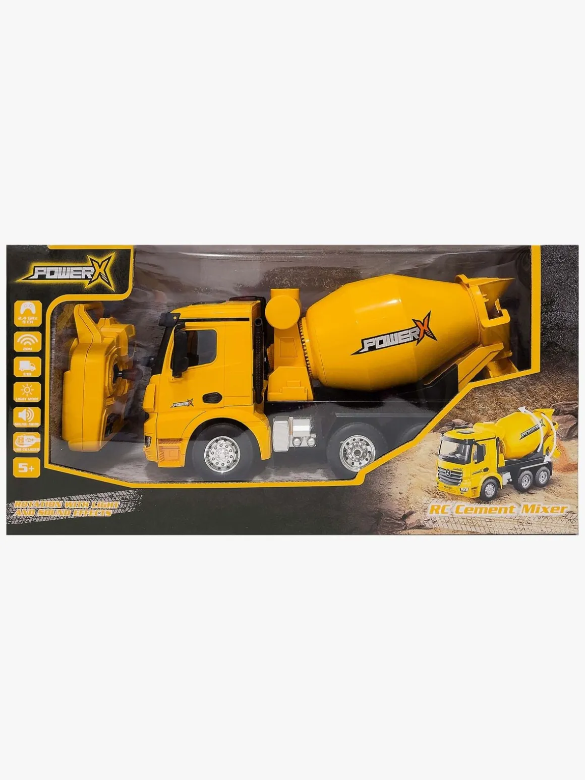 – Indeholder: 1 fjernstyret cementblander, 1 fjernbetjening, 1 opladekabel.