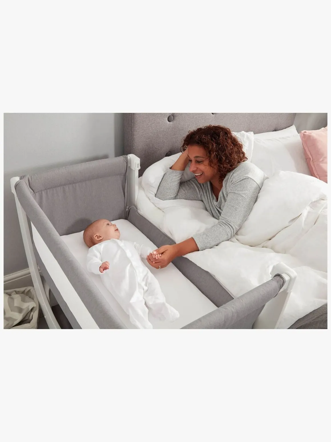 – Denne Shnuggle bedside crib kan laves om til en børneseng ved hjælp af en Shnuggle Air konverteringsindsats (sælges separat). Dette gør, at sengen kan bruges i længere tid.