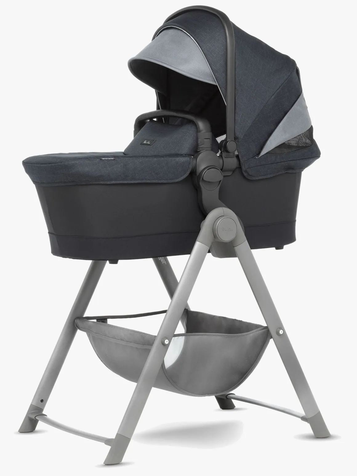 Under stativet er der en opbevaringskurv til legetøj. Stativet er let at folde sammen og det fylder ikke meget når det ikke bliver brugt. Stativet er lavet af stabilt aluminium.
