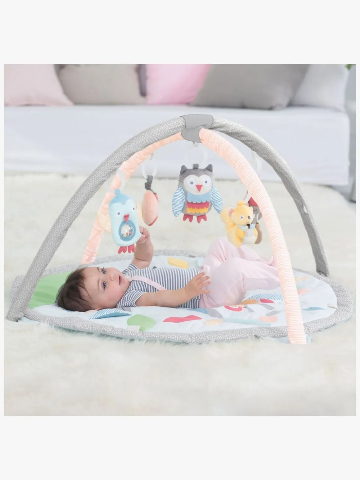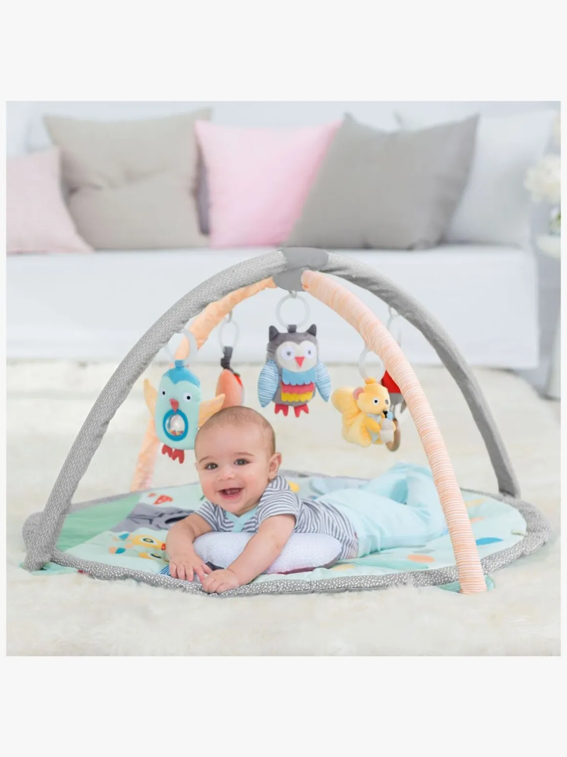 Det kan endda bruges fra fødslen og har 13 løkker i forskellige højder at hænge legetøjet i, så man kan udfordre barnet, når det vokser.