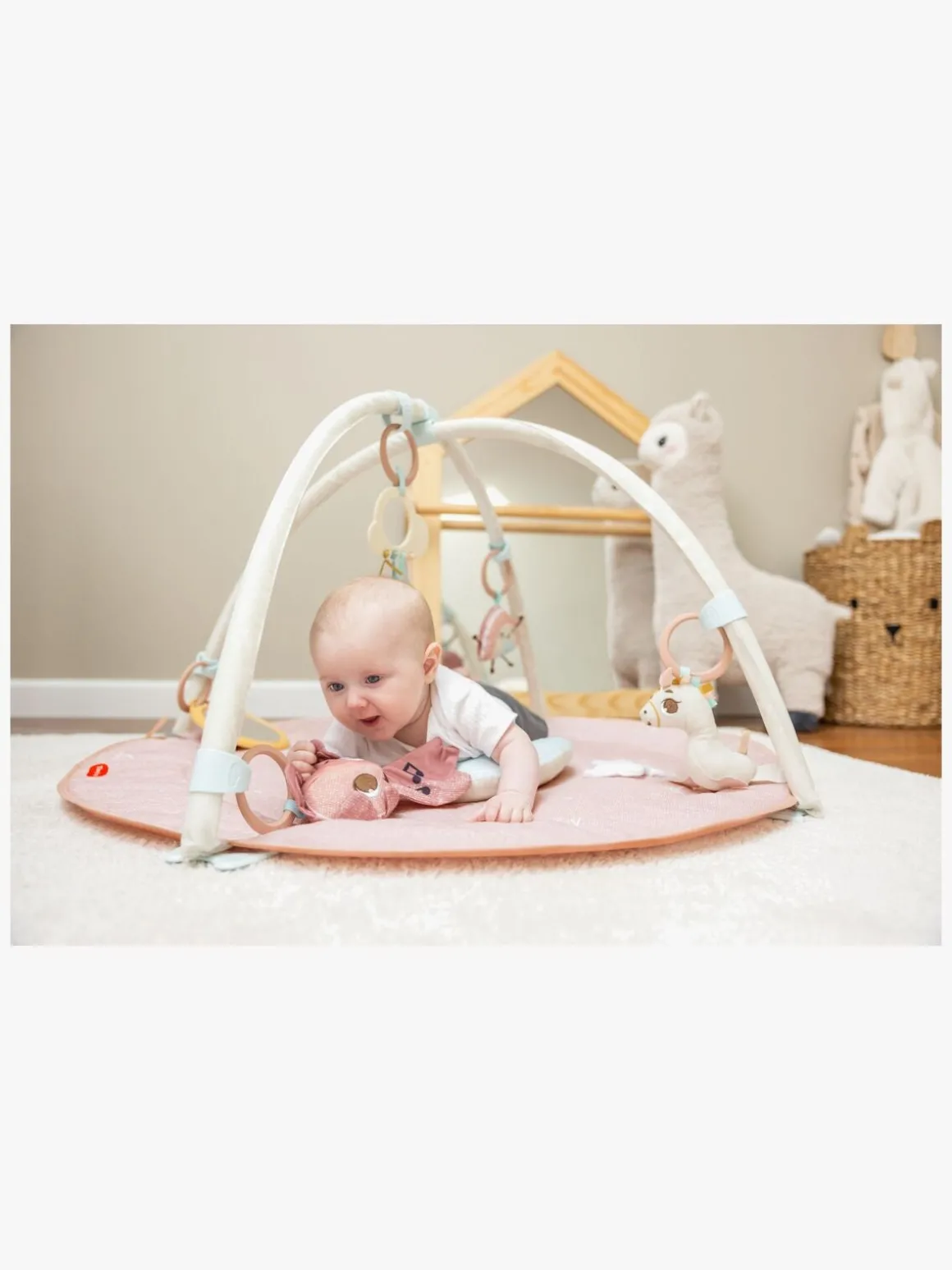 – Advarsler: For at forhindre mulige skader pga. sammenfiltring skal du fjerne dette legetøj, når barnet begynder at forsøge at komme op på hænder og knæ.