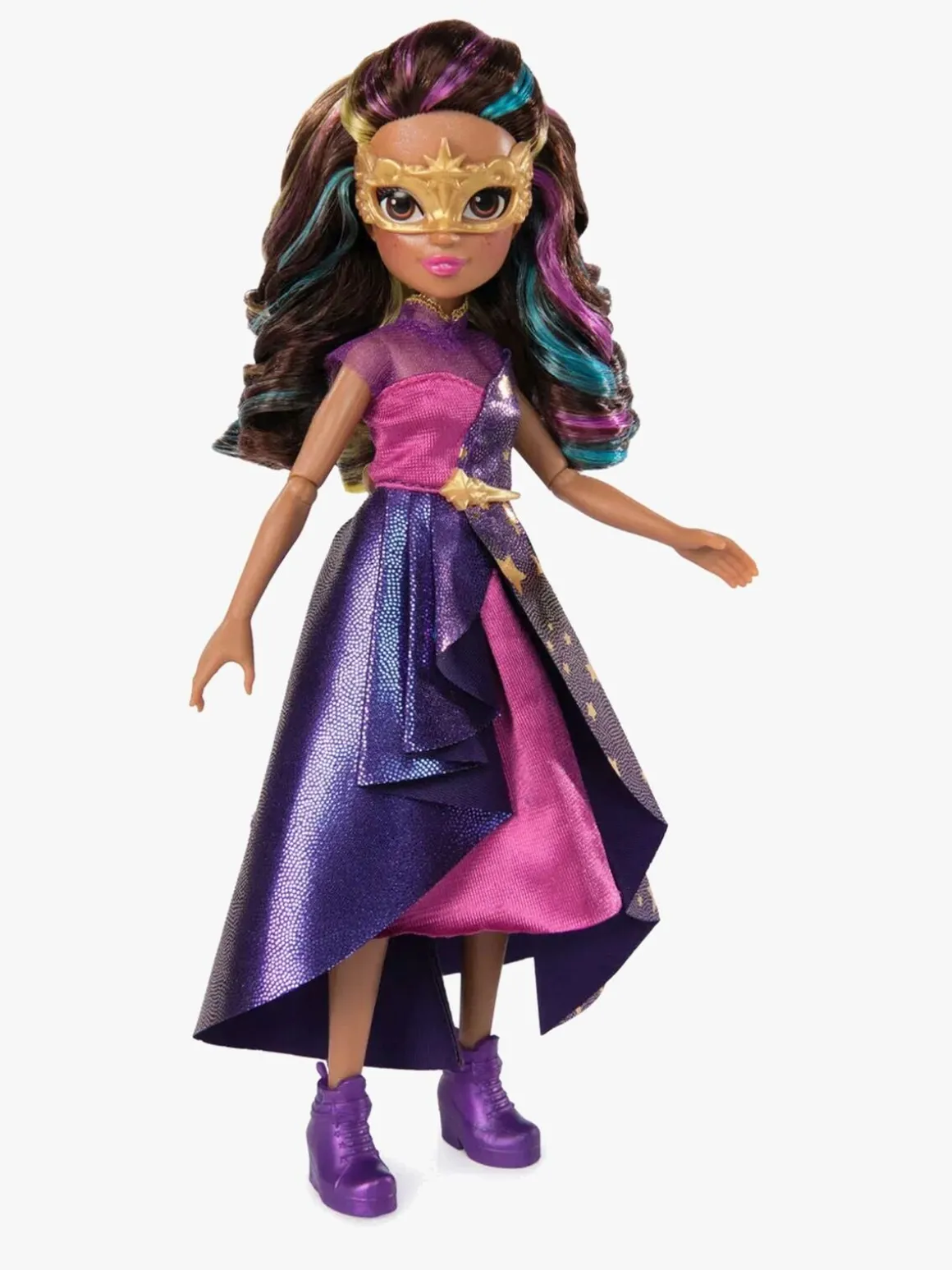 – Indeholder: 1 dukke, 1 kjole, 1 jakke, 1 par ridestøvler, 1 par sko, 1 halskæde, 1 bælte, 1 maske, 1 hårklemme.