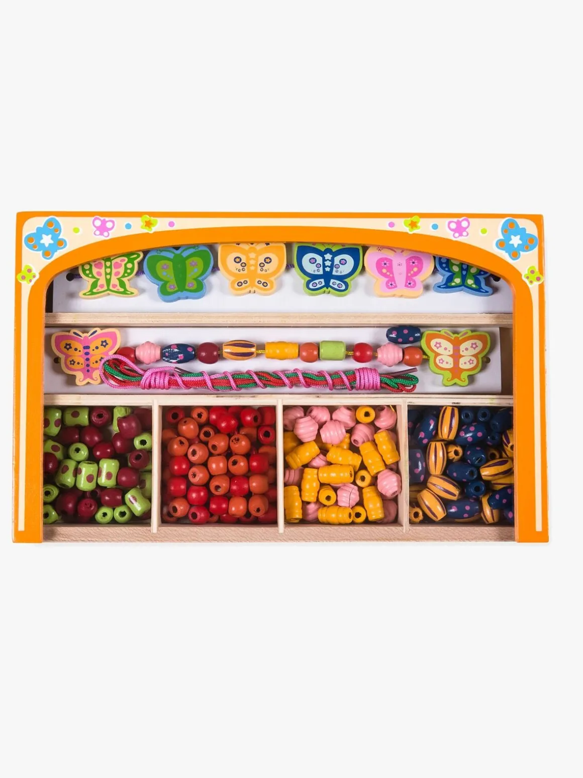 Du kan tilkøbe VIGA Træperler Flower og Heart for flere perler og kombinationer.