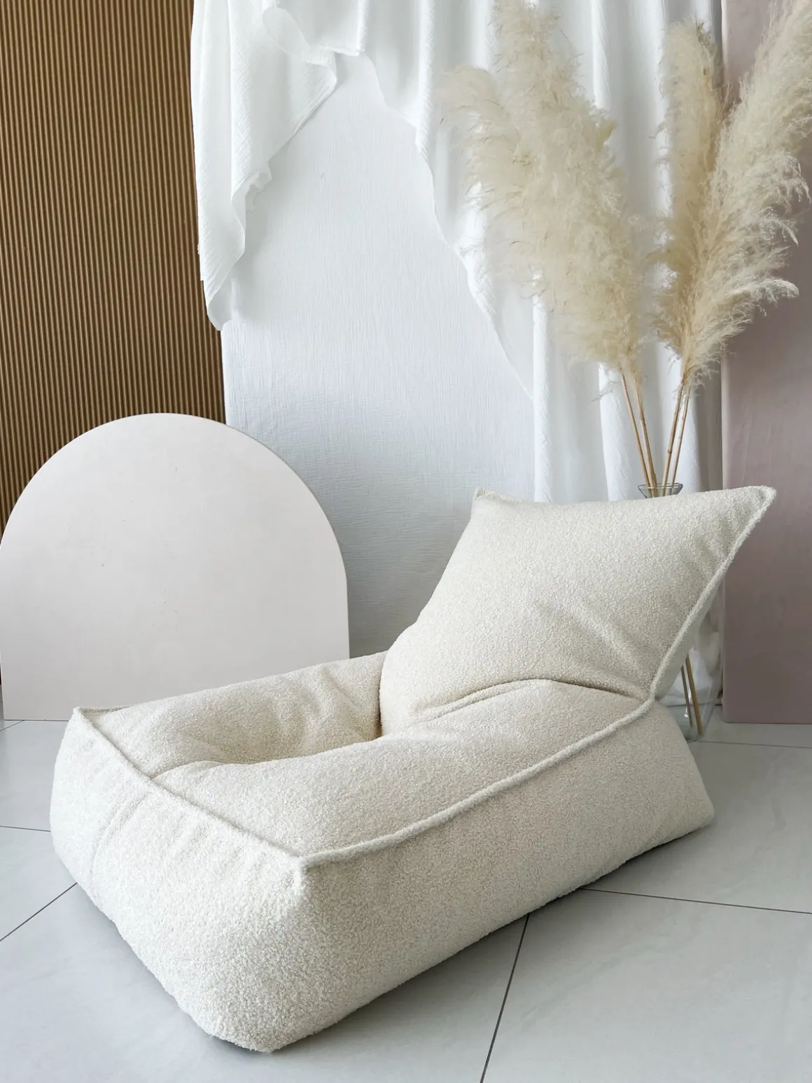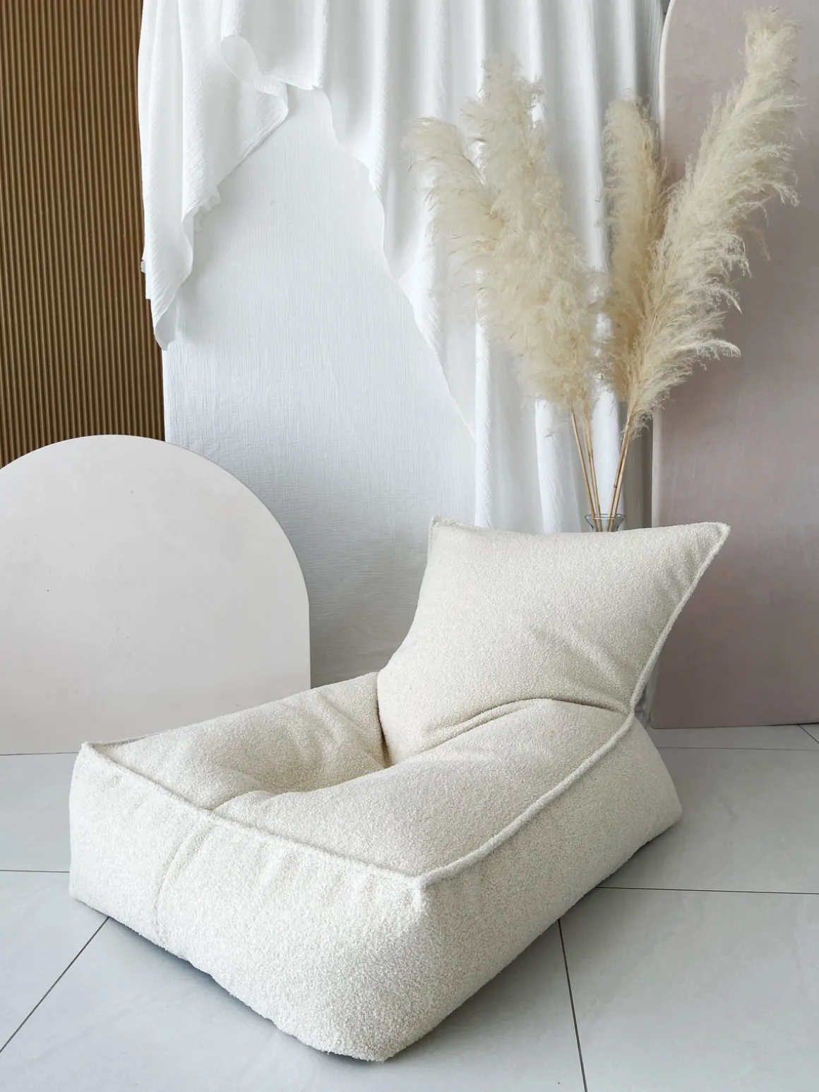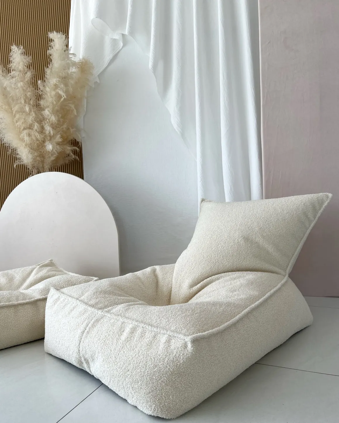 | Materiale | Betræk: polyester bouclé. Fyld: polystyrenkugle. |