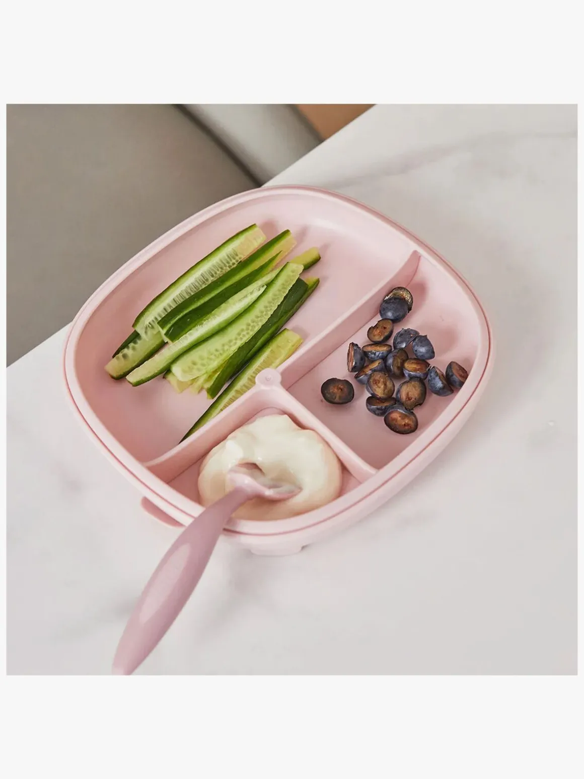 – Afrundede og høje kanter, der gør det nemt at samle maden op.