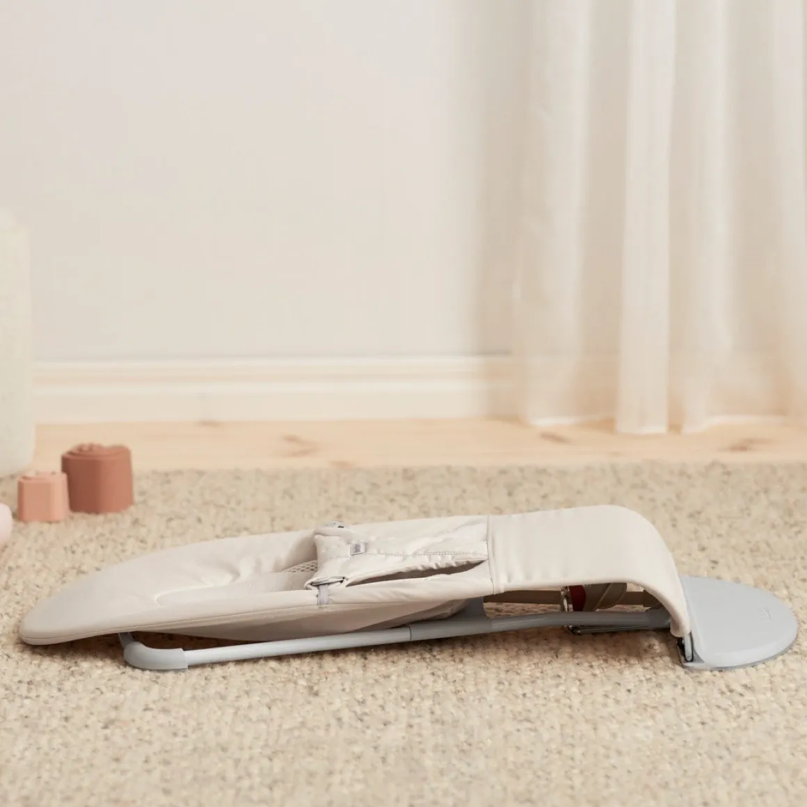 – Når barnet kan sidde uden støtte, kan skråstolen laves om til en stol.