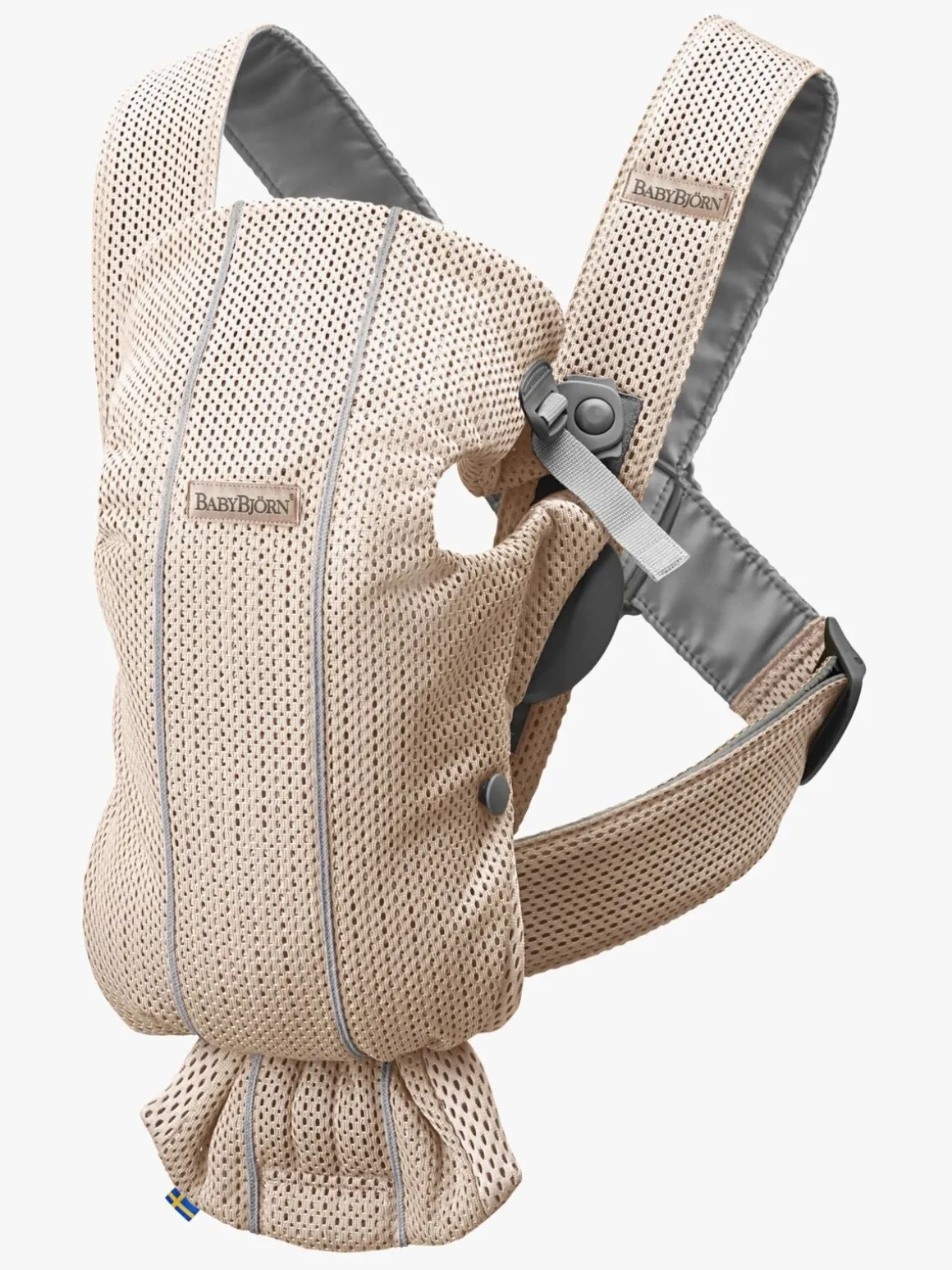 Mini er ekstra bred sammenlignet med Babybjörns bæresele Original. Den er hele 10 cm brederede på det bredeste stykke. Det giver bedre støtte til dit barns ben og hofter i indadvendt position.