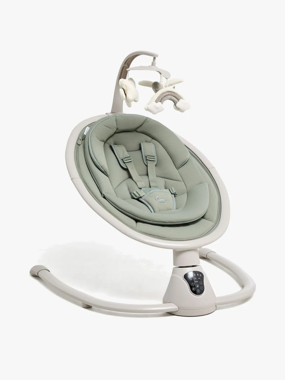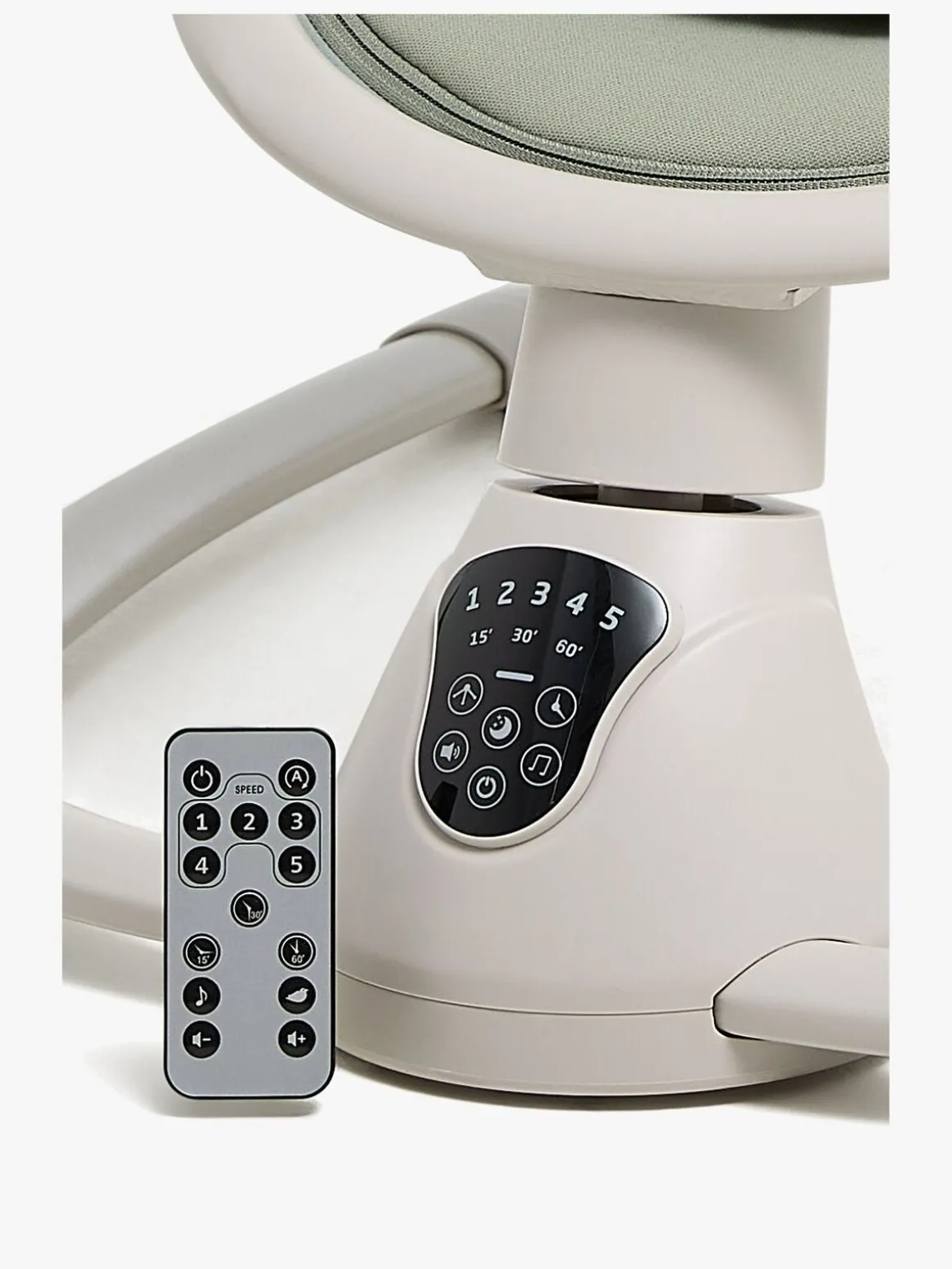 – Fjernkontrol medfølger til justering af gynge- og musikfunktion.