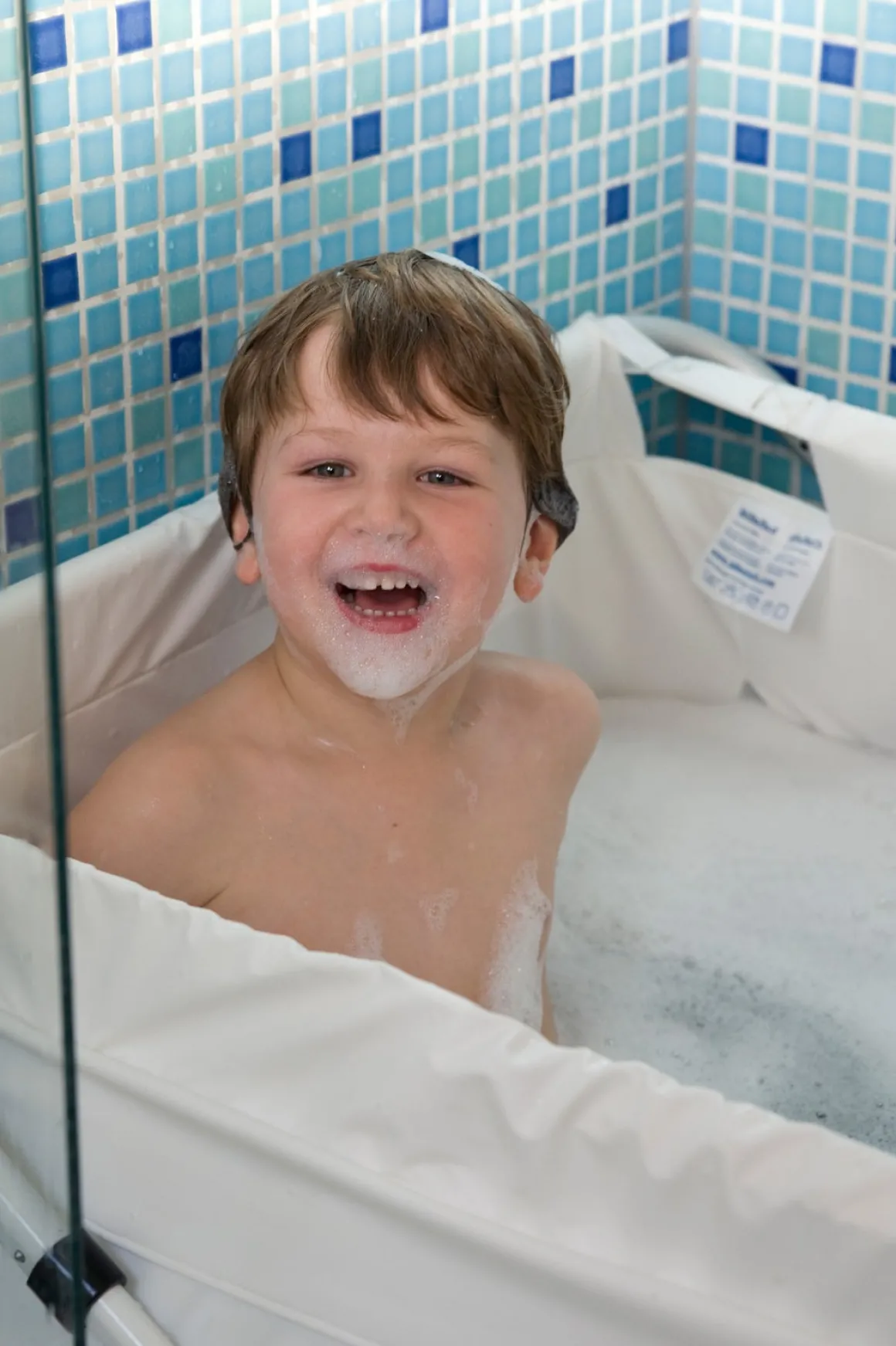 – Skridsikkert materiale og badekarsprop medfølger.