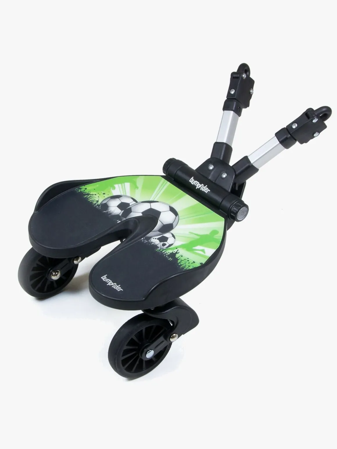 En afbalanceret affjedringsteknik giver barnet en jævn og behagelig ståplads, selv på ujævnt underlag, og det sættes fast på barnevognen med et snuptag. Lettere bliver det ikke!
