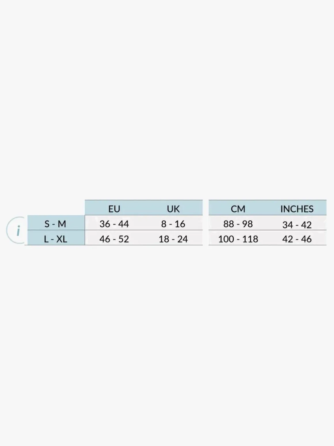 – Størrelse S/M passer en talje på 88-98 cm.